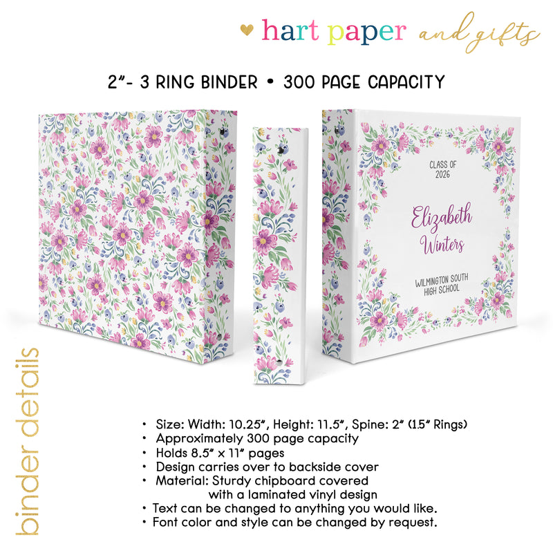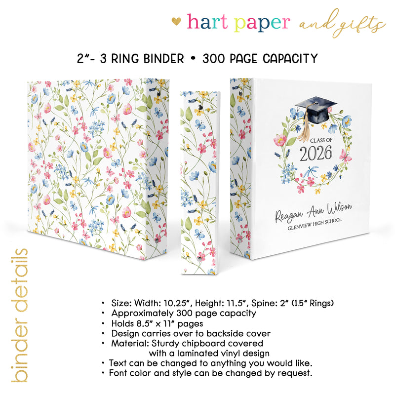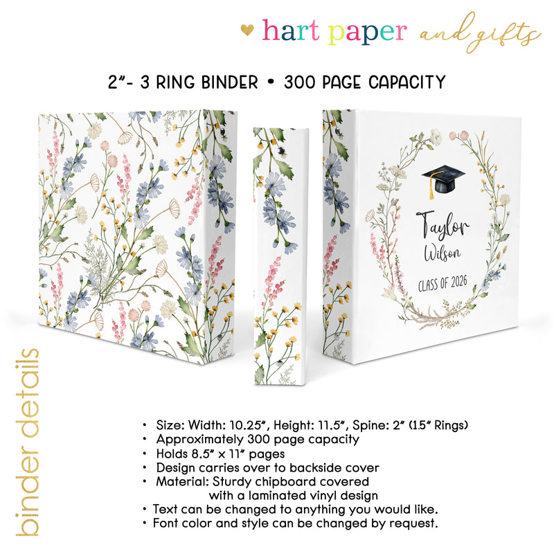 Wildflowers Wild Flowers Graduation Personalized Custom 2" 3 Ring Binder • School Office Supplies