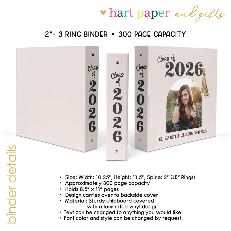Graduation Photo Personalized Custom 2" 3 Ring Binder • School Office Supplies