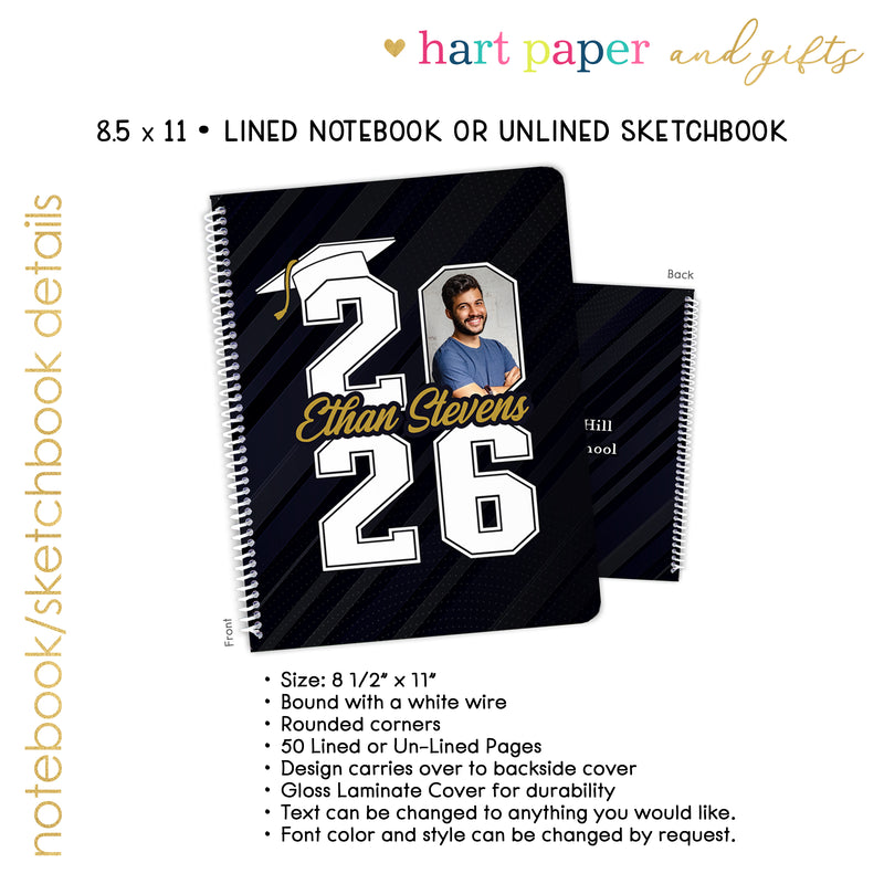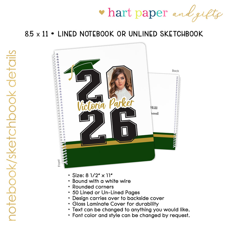 Photo Graduation Personalized Custom Notebook or Sketchbook • School Office Supplies Guest Book Class Graduate Senior High School College Open House
