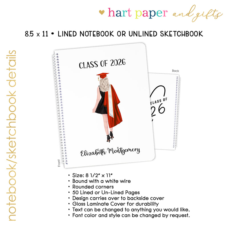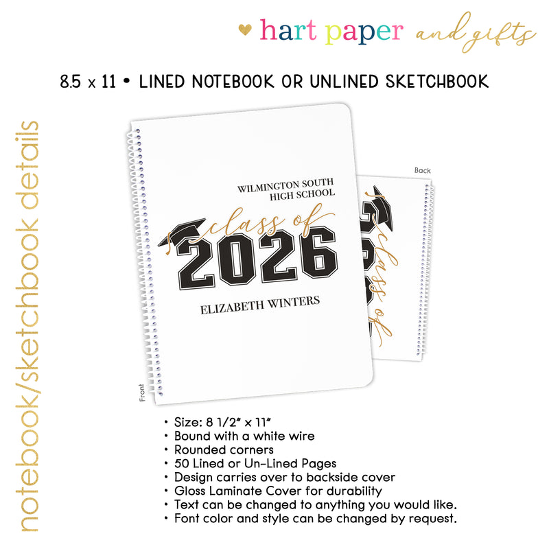 Graduation Personalized Custom Notebook or Sketchbook • School Office Supplies Guest Book Class Graduate Senior High School College Open House