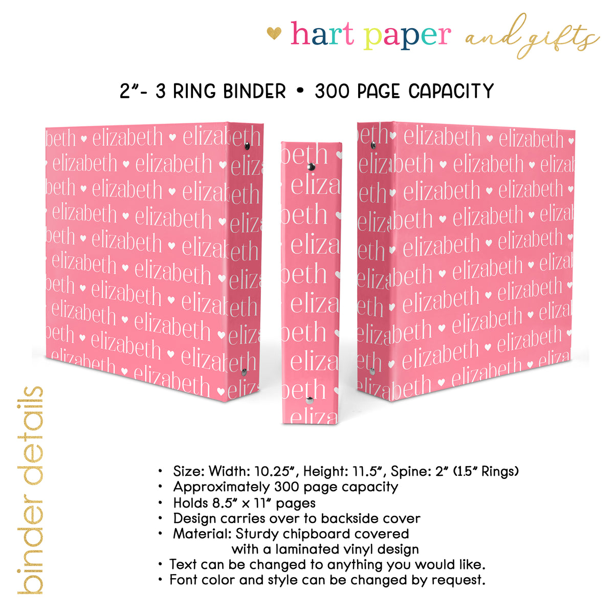 ANY COLOR Repeat Name Personalized Custom 2" 3 Ring Binder • School Office Supplies