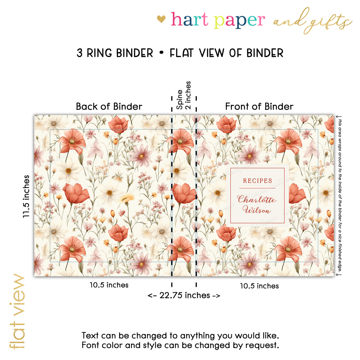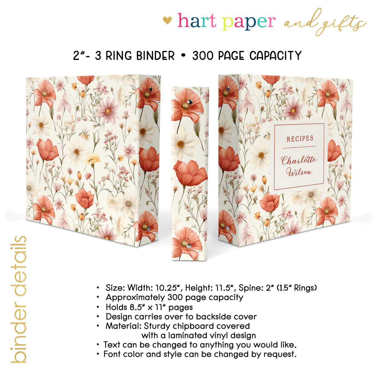 Flowers Autumn Fall Personalized Custom 2" 3 Ring Recipe Book Binder