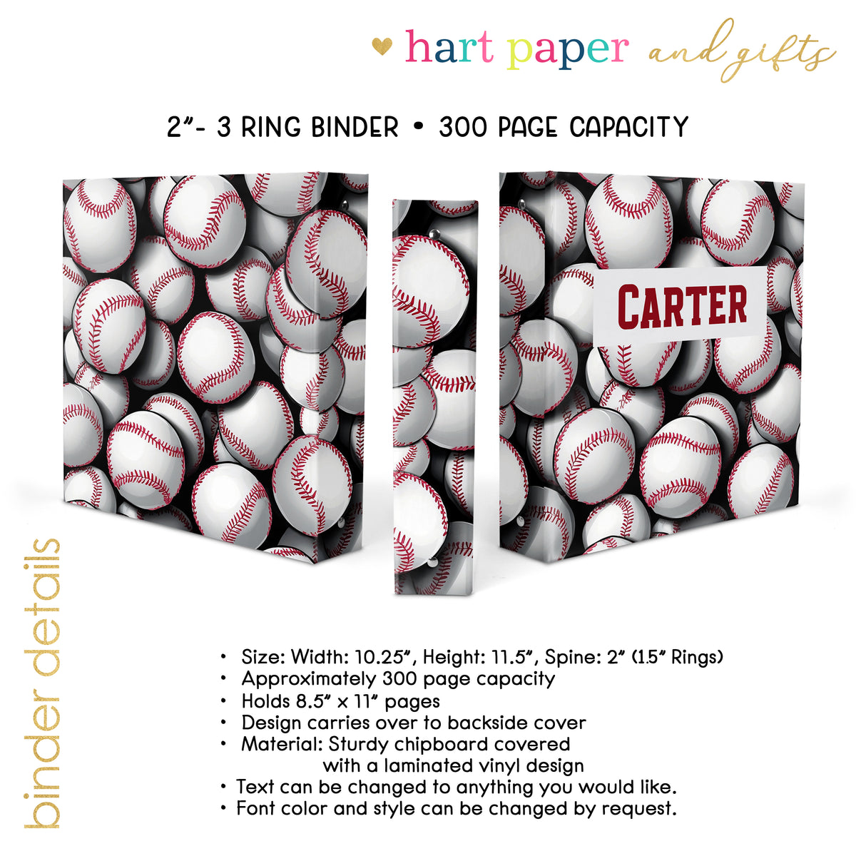 Baseball Sports Personalized Custom 2" 3 Ring Binder • School Office Supplies