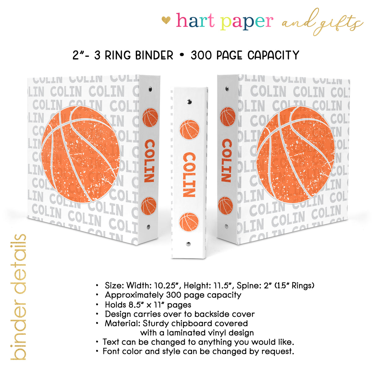 Basketball Sports Personalized Custom 2" 3 Ring Binder • School Office Supplies