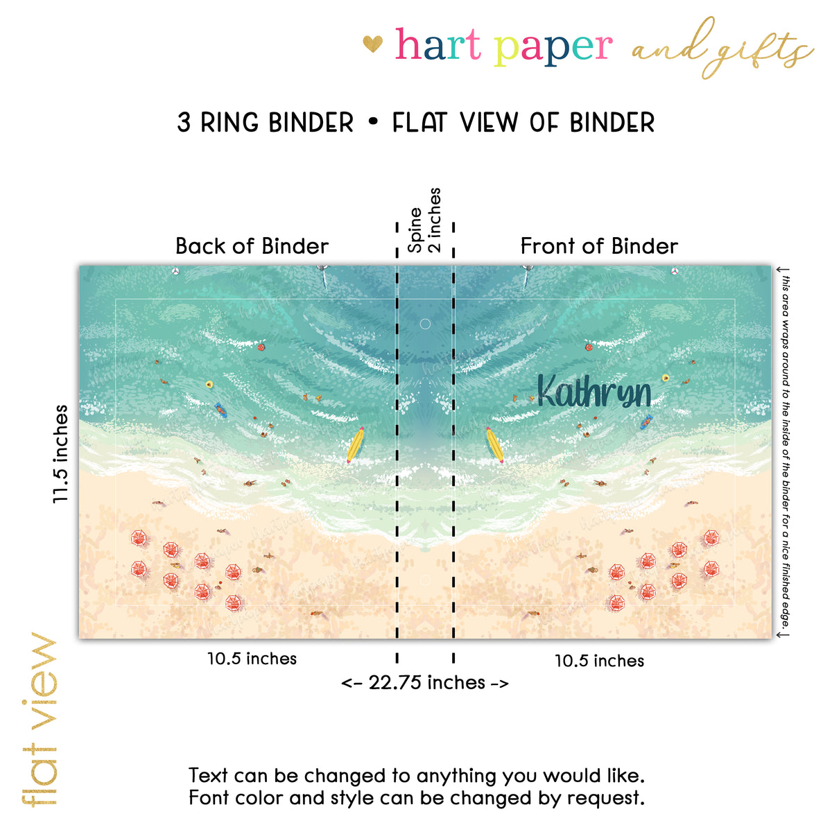 Beach Personalized Custom 2" 3 Ring Binder • School Office Supplies