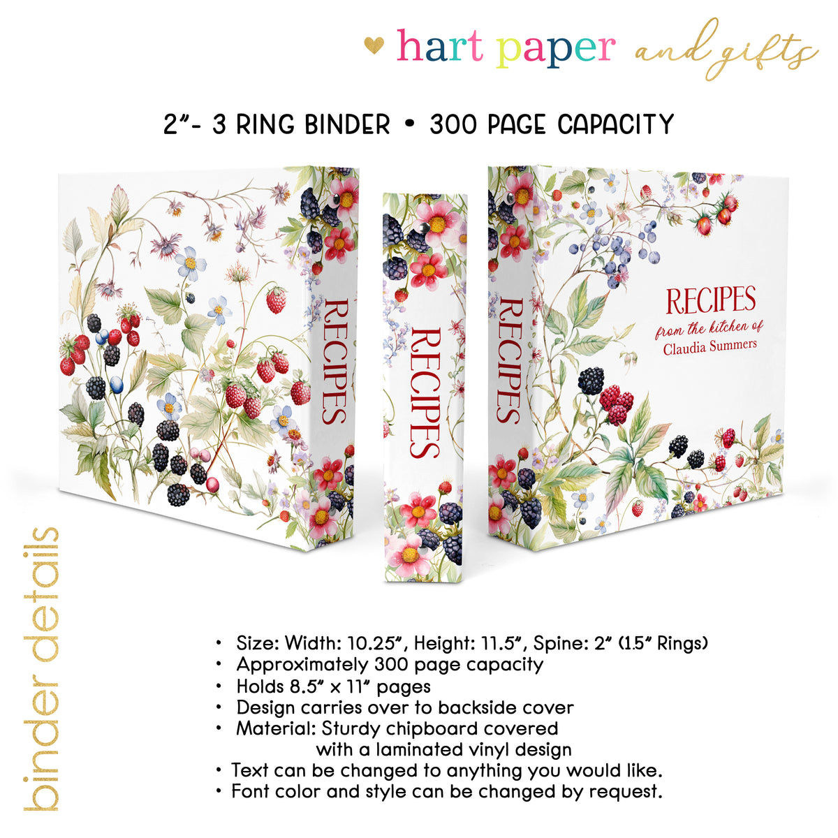 Berries Personalized Custom 2" 3 Ring Recipe Book Binder