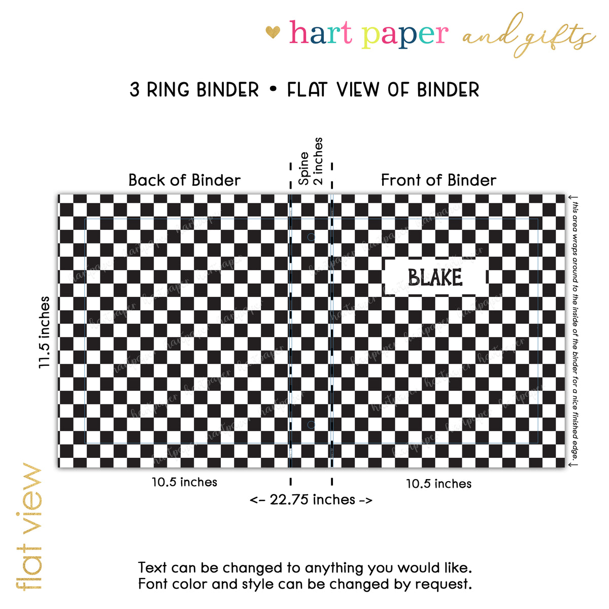 Black White Checks Personalized Custom 2" 3 Ring Binder • School Office Supplies