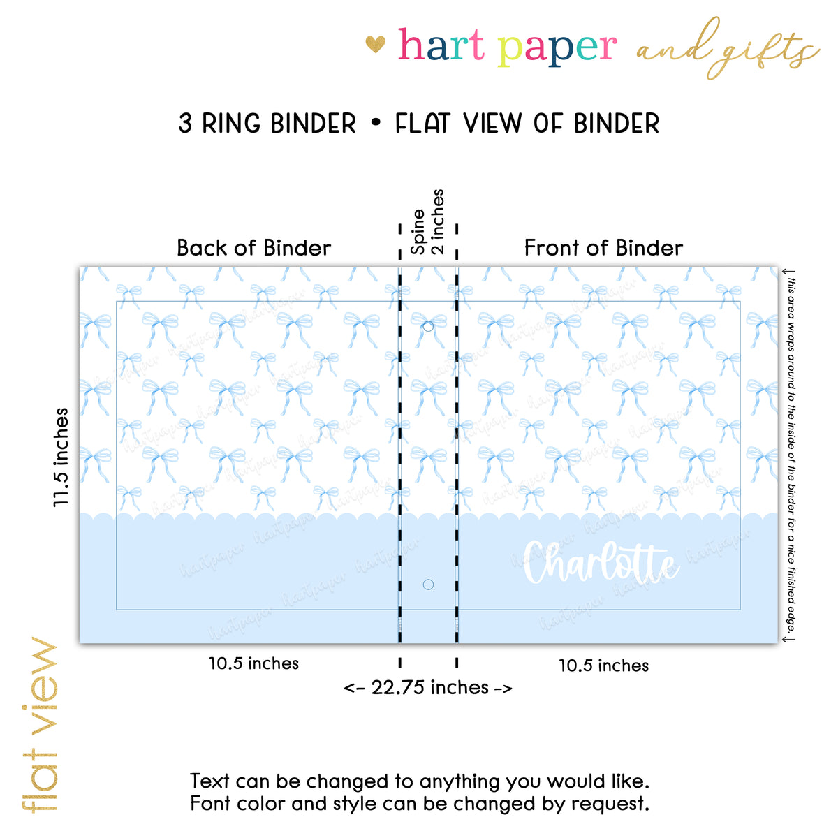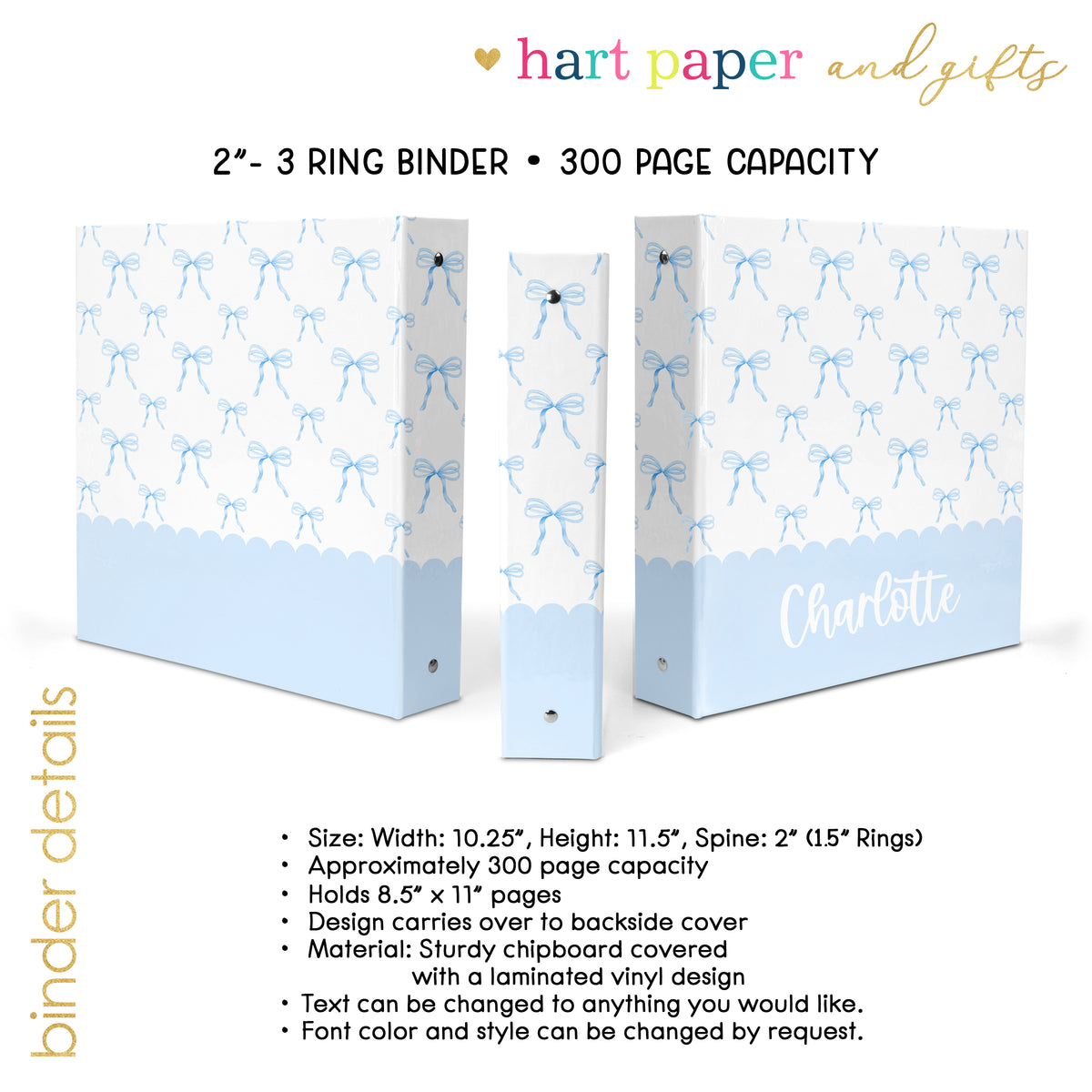 Blue Bow Coquette Personalized Custom 2" 3 Ring Binder • School Office Supplies