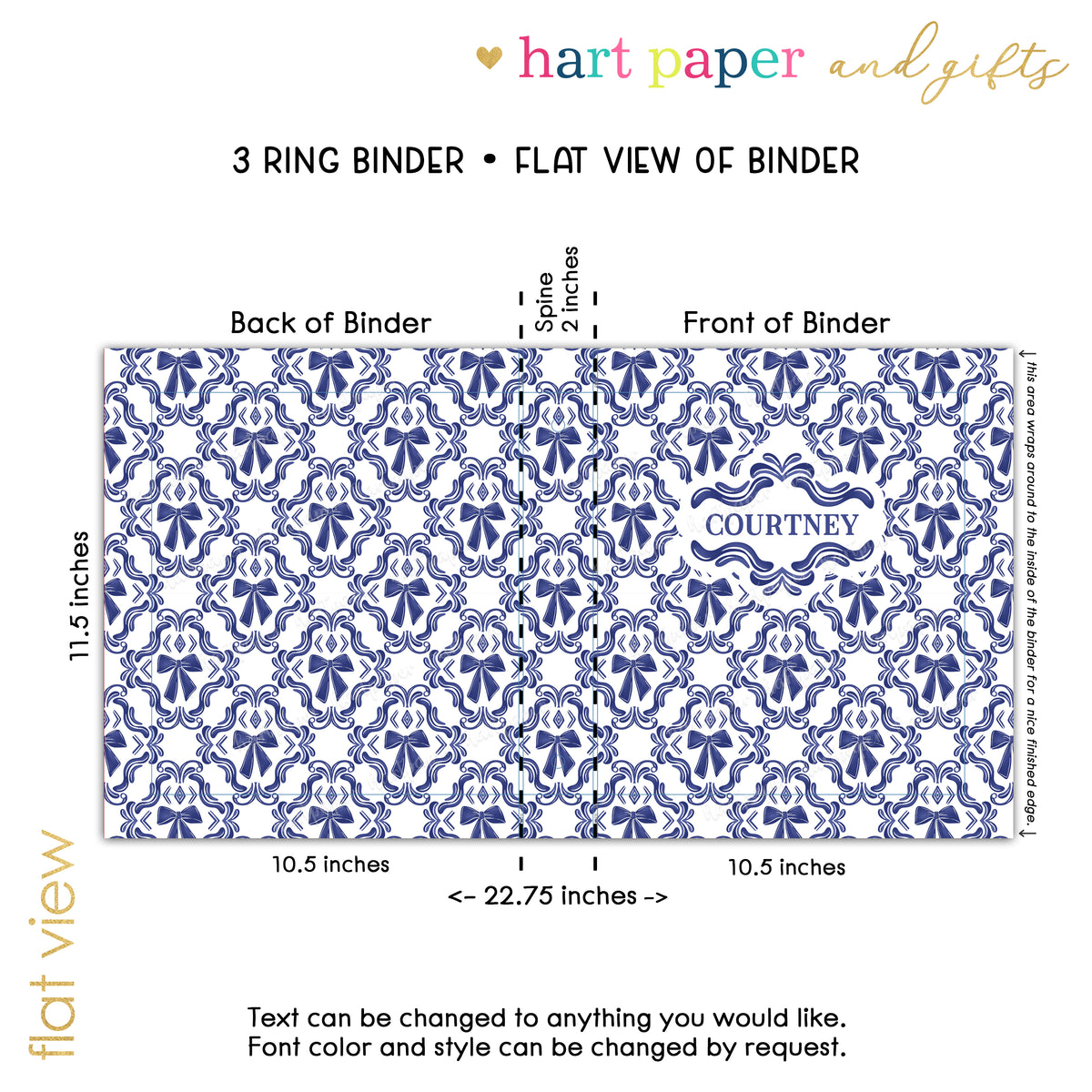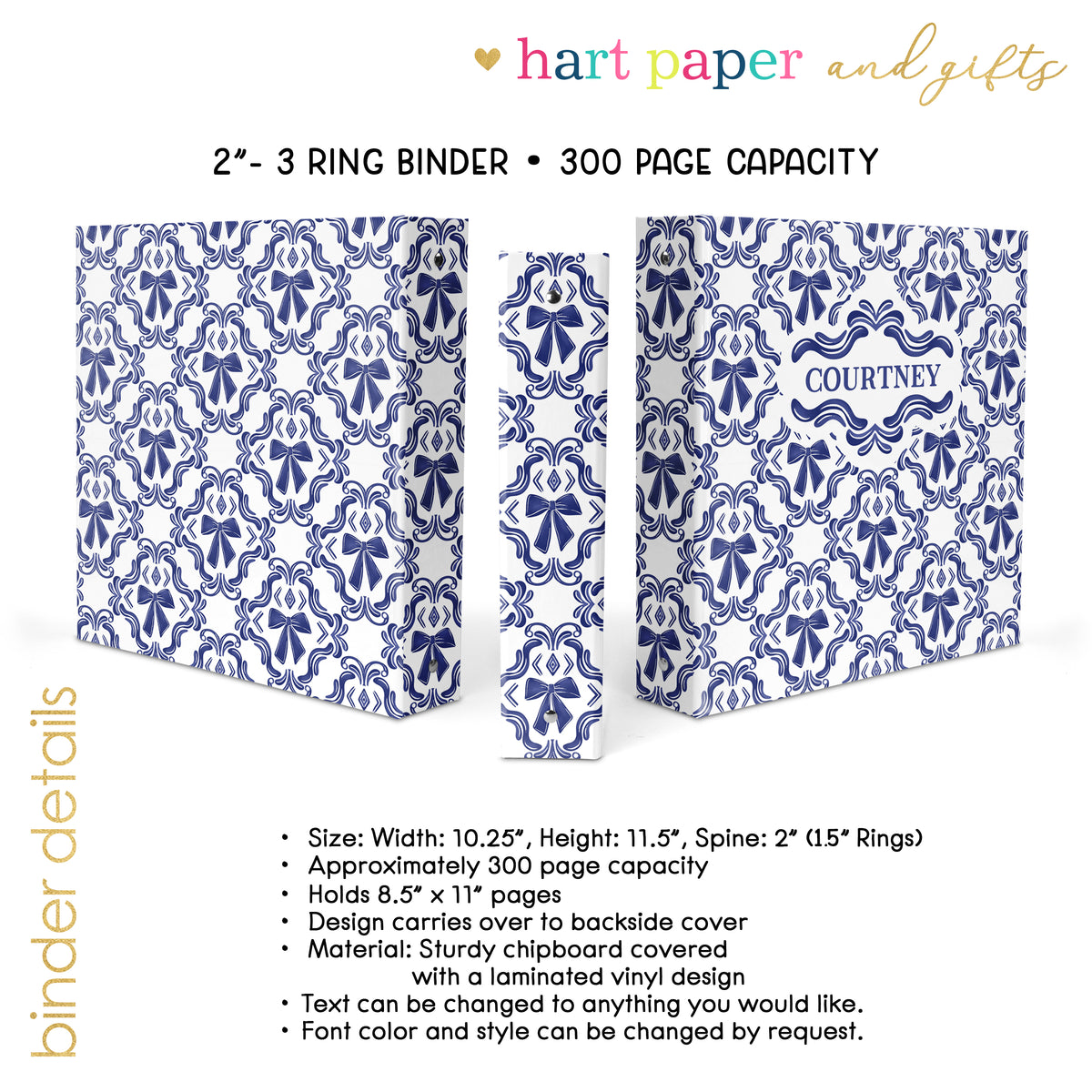 Blue Bow Coquette Personalized Custom 2" 3 Ring Binder • School Office Supplies