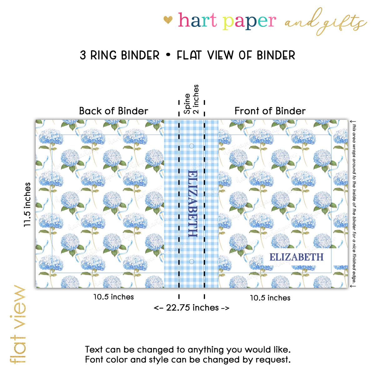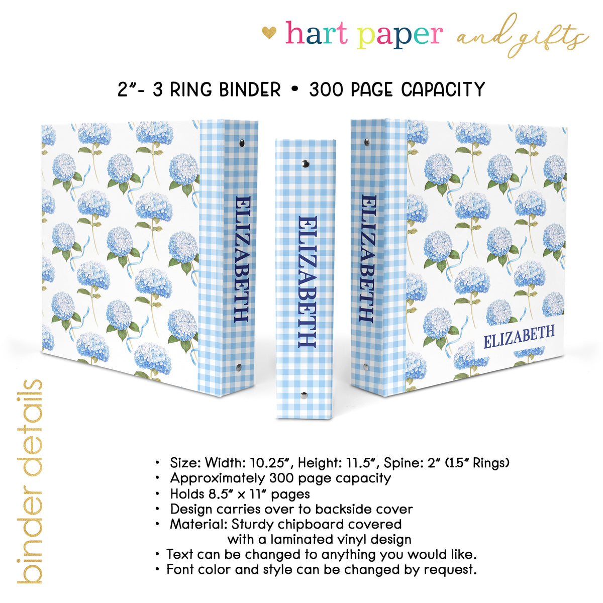 Blue Hydrangea Personalized Custom 2" 3 Ring Binder • School Office Supplies
