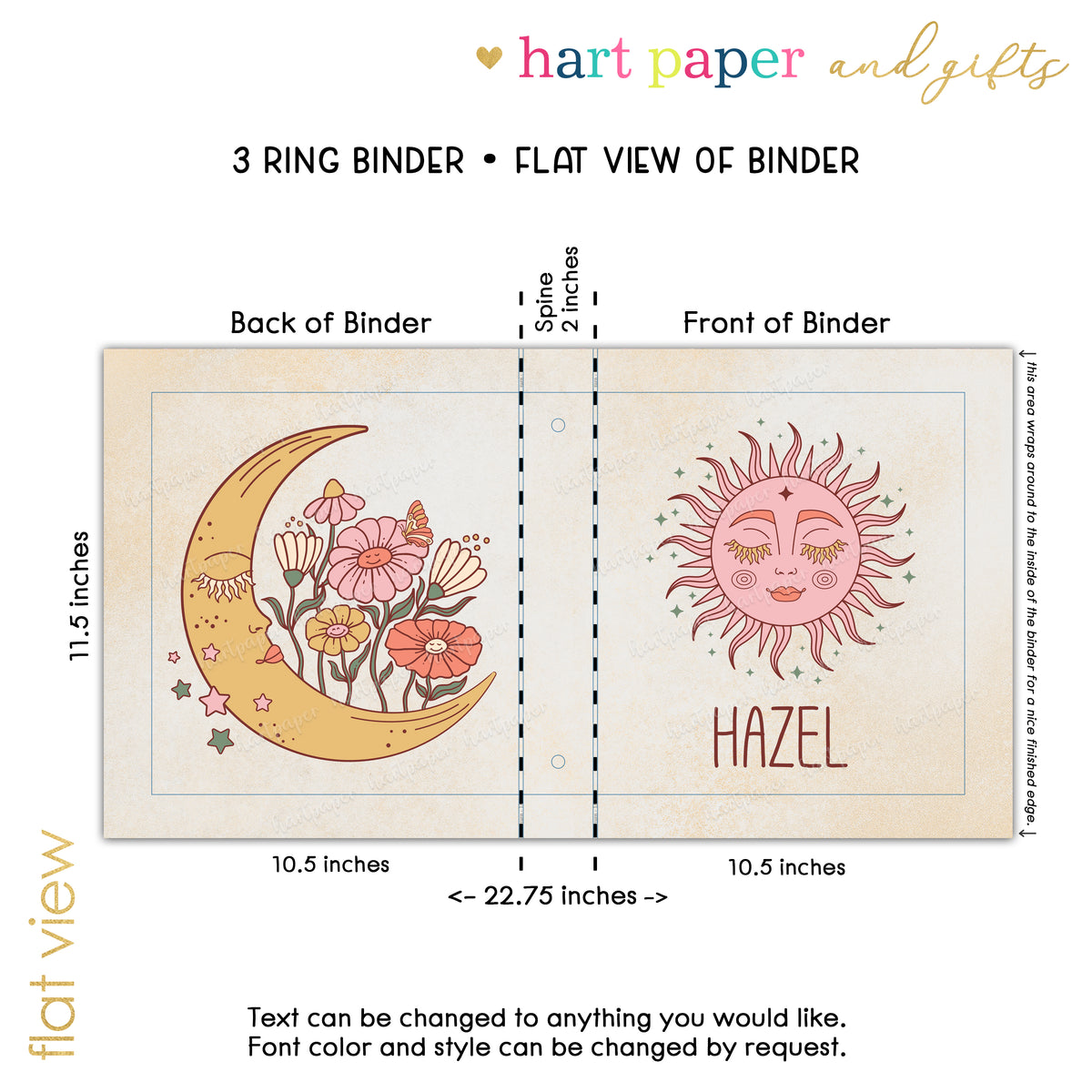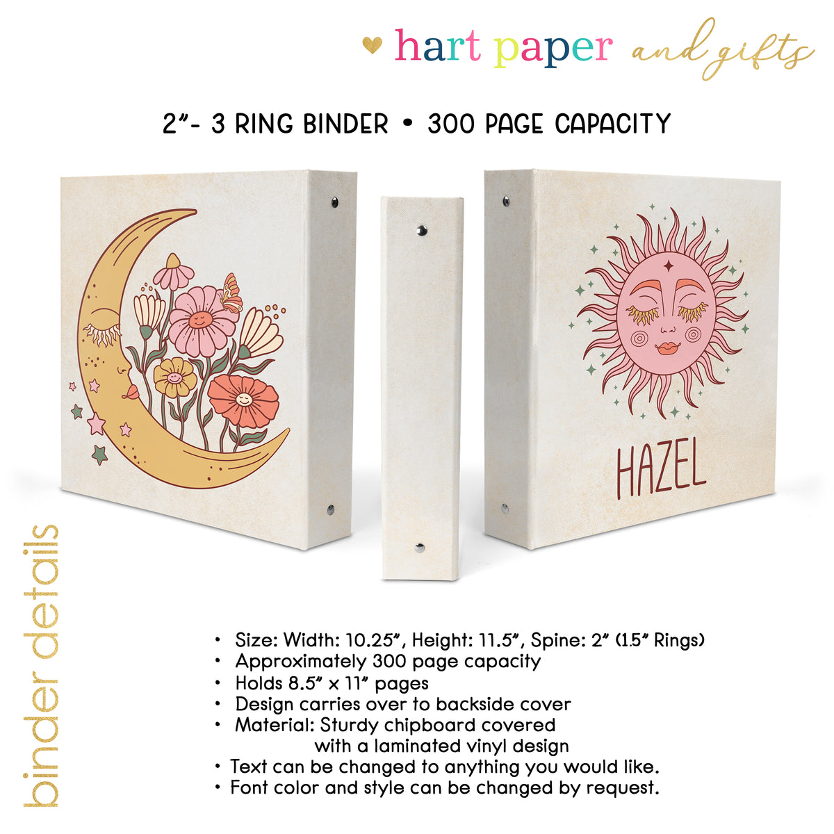 Boho Sun Personalized Custom 2" 3 Ring Binder • School Office Supplies