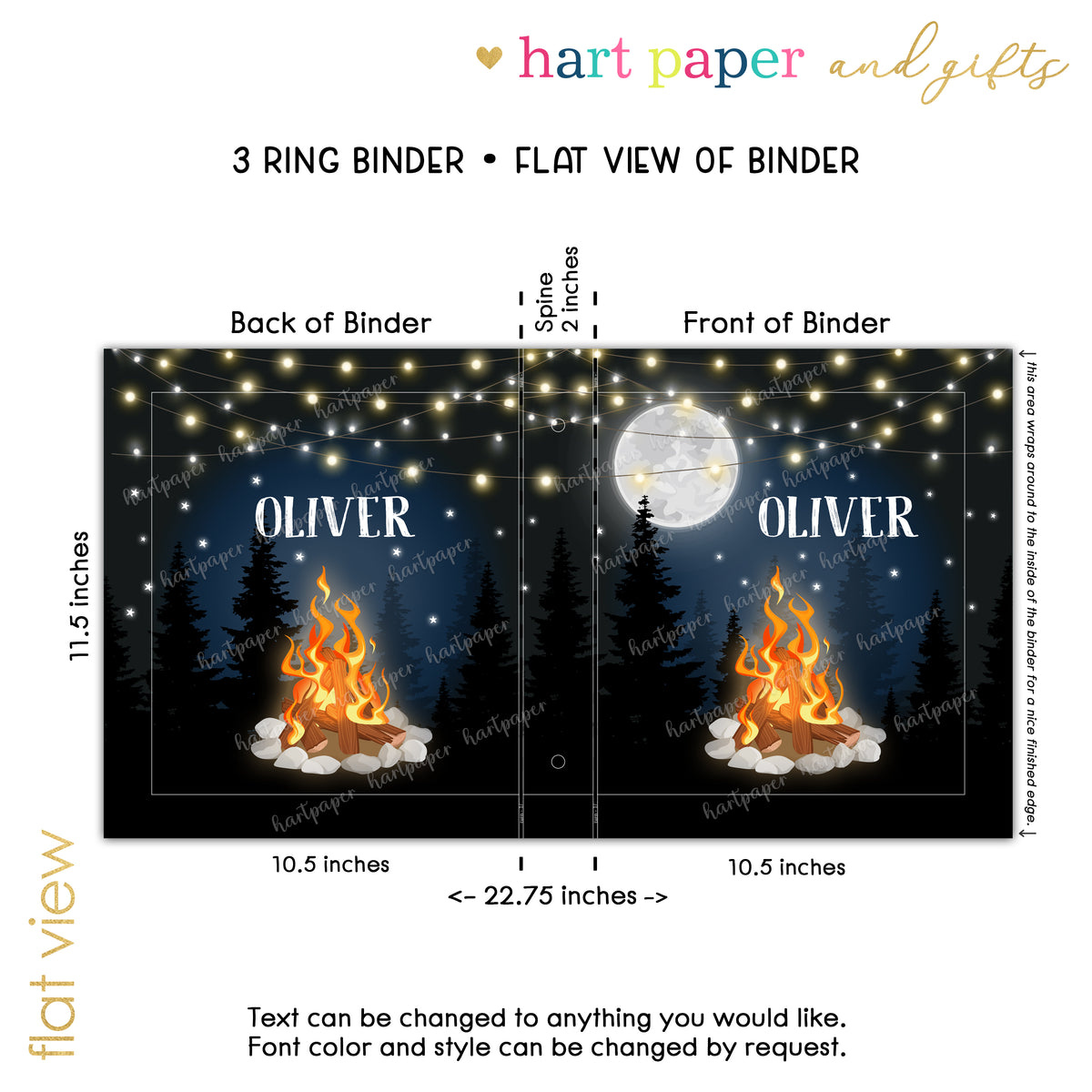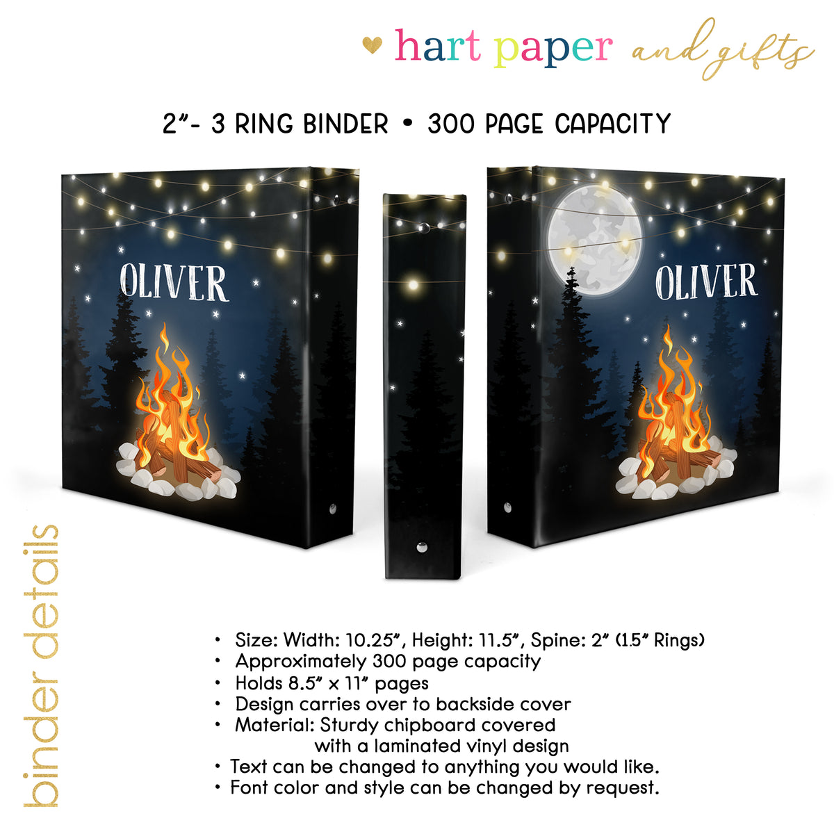 Bonfire Camping Summer Camp Personalized Custom 2" 3 Ring Binder • School Office Supplies
