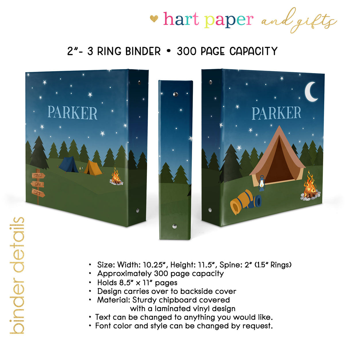 Camping Summer Camp Personalized Custom 2" 3 Ring Binder • School Office Supplies