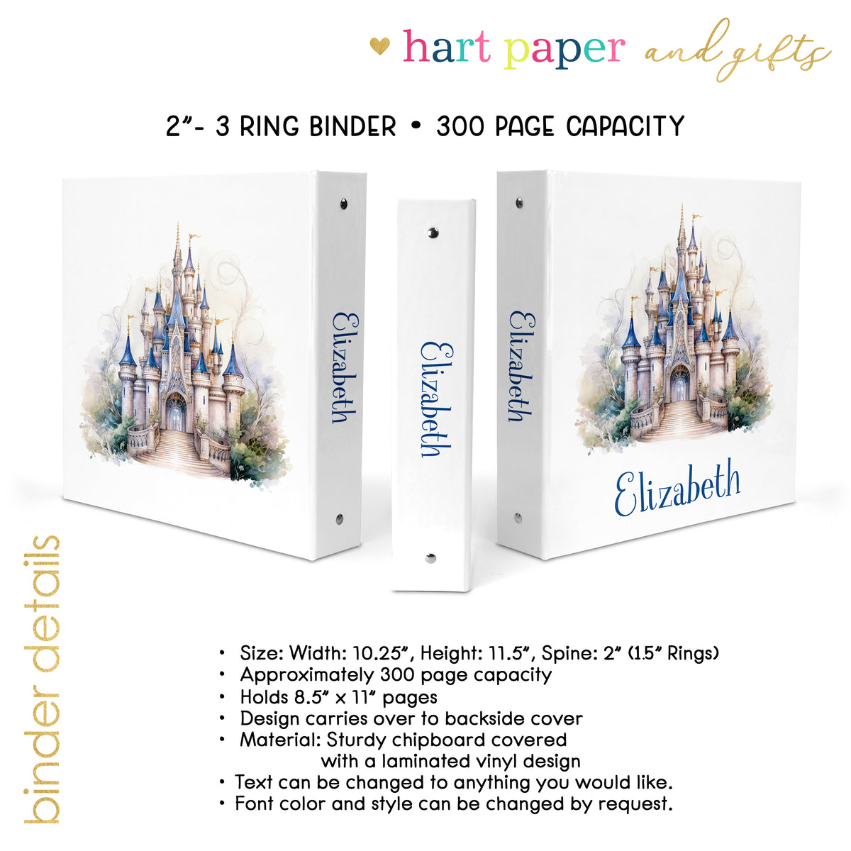 Castle Personalized Custom 2" 3 Ring Binder • School Office Supplies
