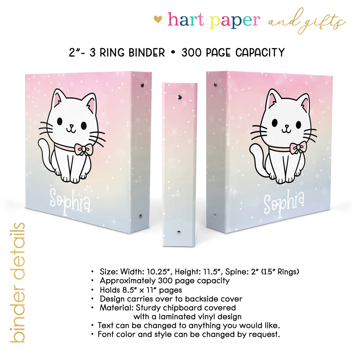 Cat Animals Personalized Custom 2" 3 Ring Binder • School Office Supplies