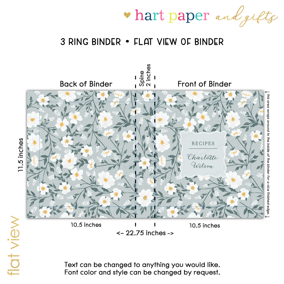 Daisy Blue Flowers Personalized Custom 2" 3 Ring Recipe Book Binder