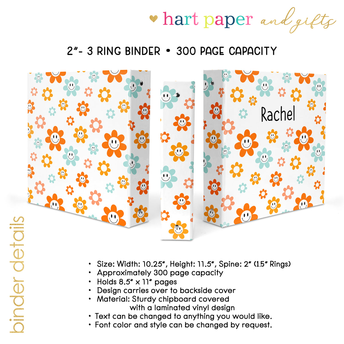 Daisy Flowers Personalized Custom 2" 3 Ring Binder • School Office Supplies