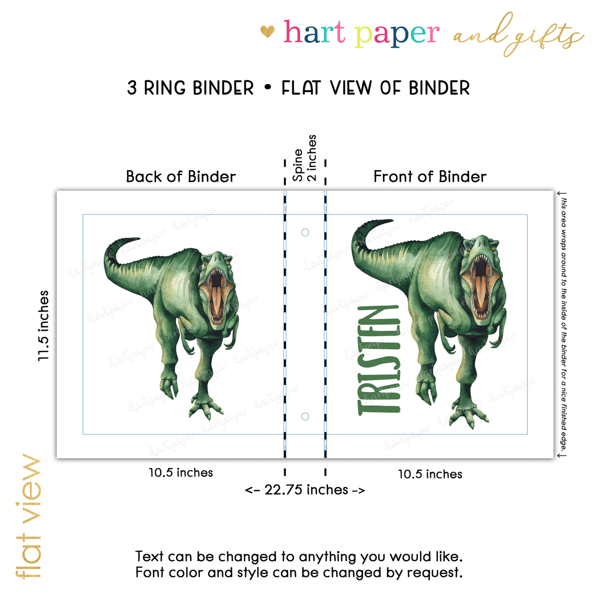 Dinosaur T-Rex Personalized Custom 2" 3 Ring Binder • School Office Supplies