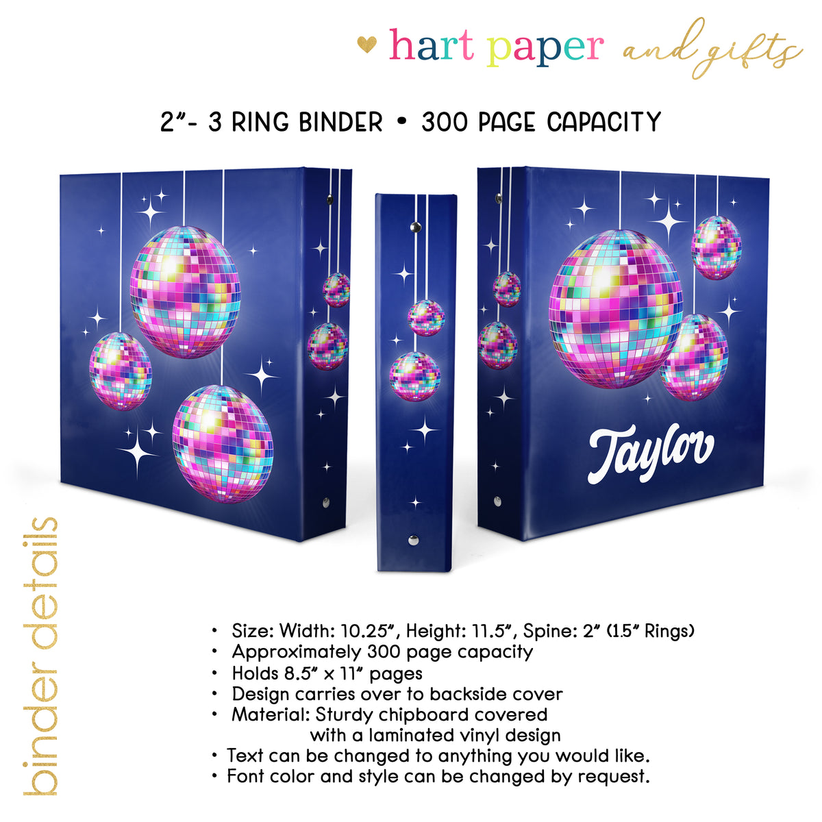 Disco Ball Personalized Custom 2" 3 Ring Binder • School Office Supplies