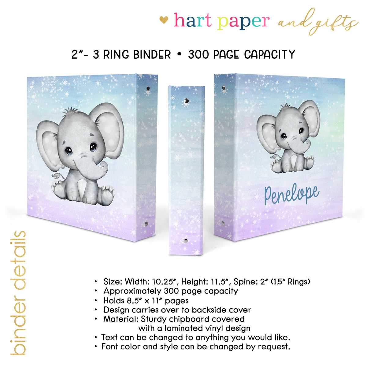 Elephant Personalized Custom 2" 3 Ring Binder • School Office Supplies