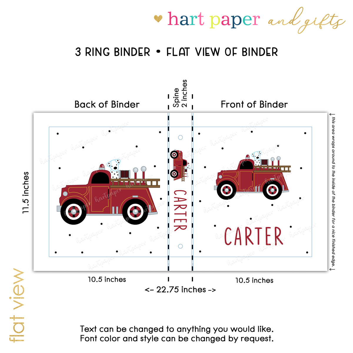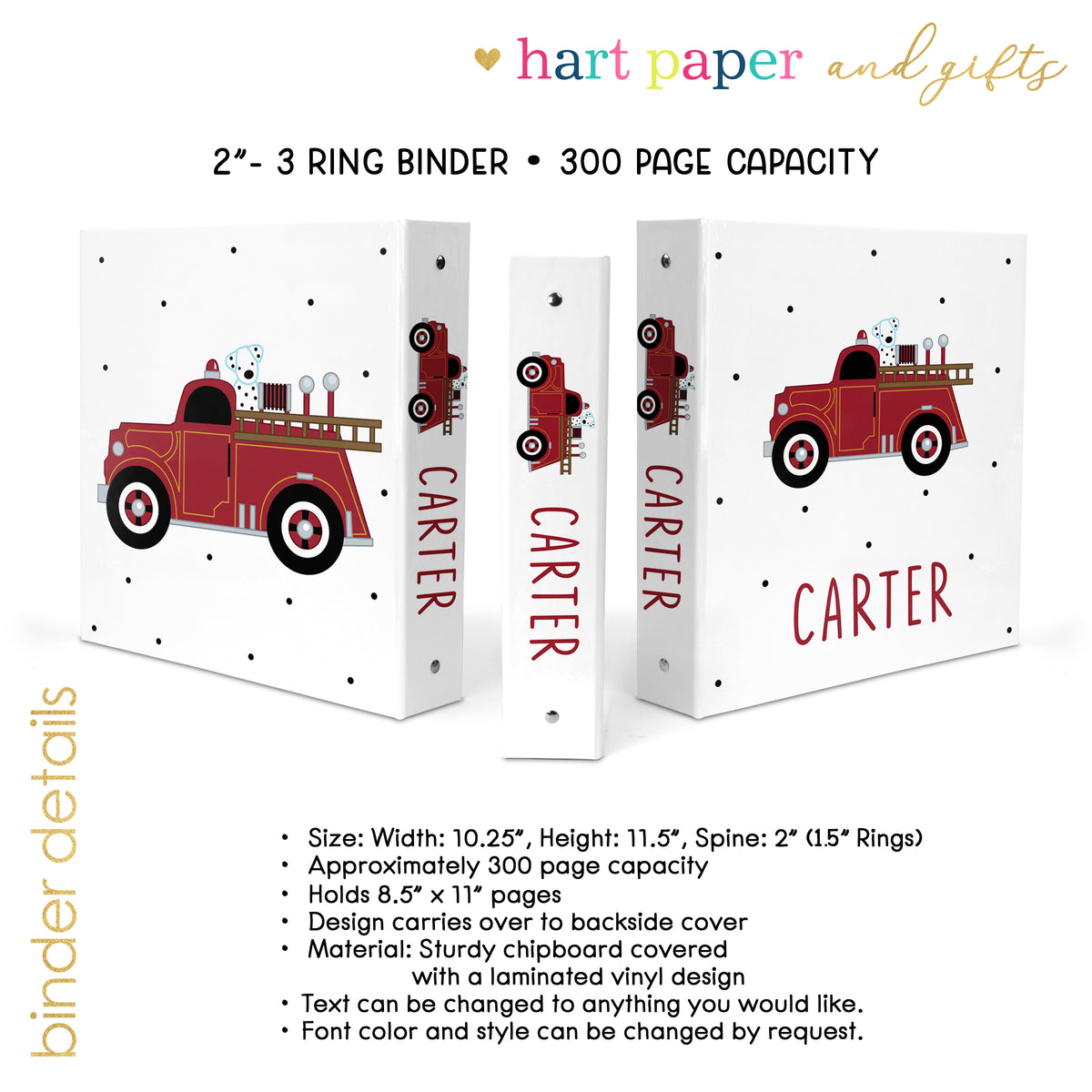 Fire Truck Personalized Custom 2" 3 Ring Binder • School Office Supplies