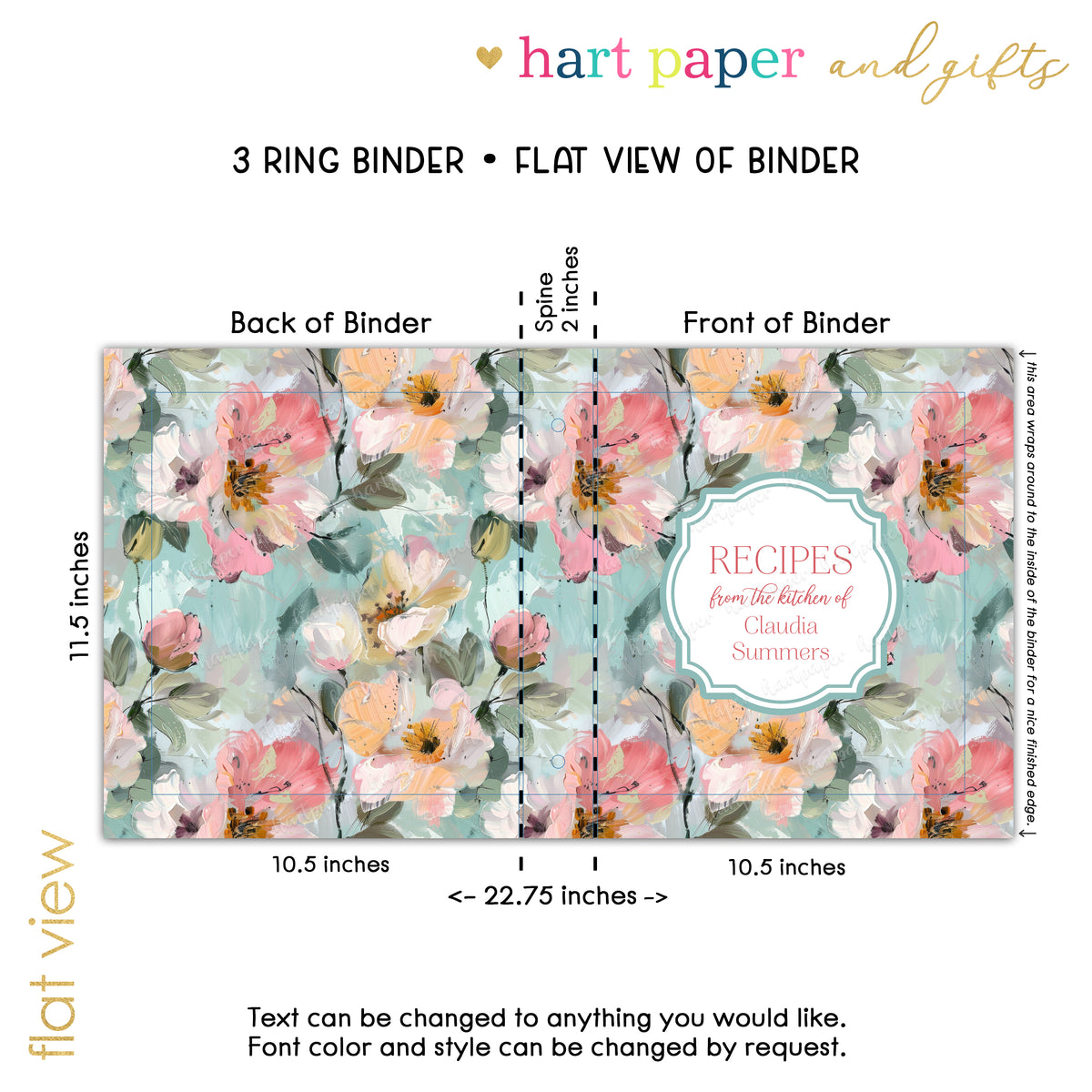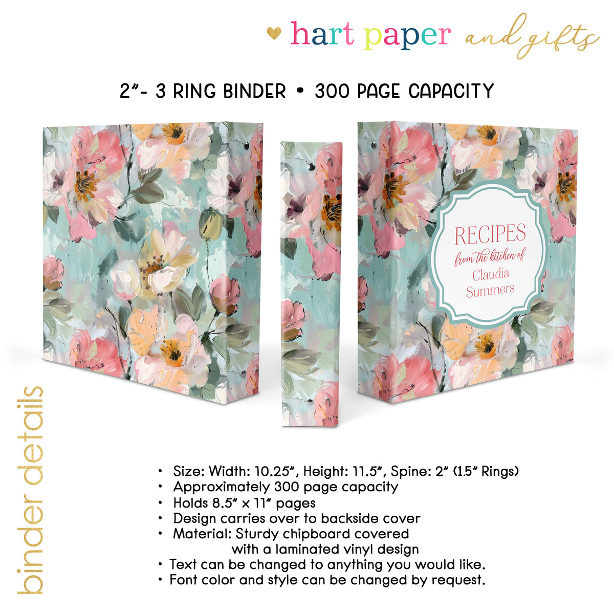 Flowers Personalized Custom 2" 3 Ring Recipe Book Binder