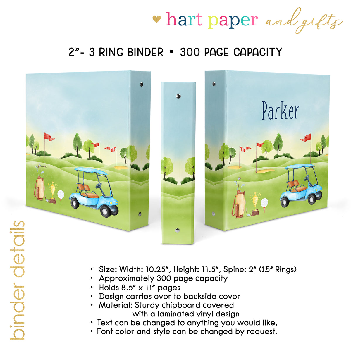 Golf Sports Personalized Custom 2" 3 Ring Binder • School Office Supplies