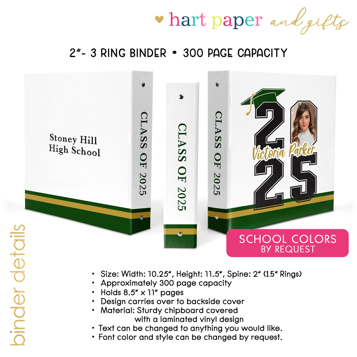 Graduation Photo Personalized Custom 2" 3 Ring Binder • School Office Supplies