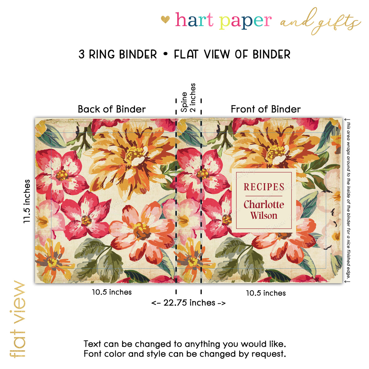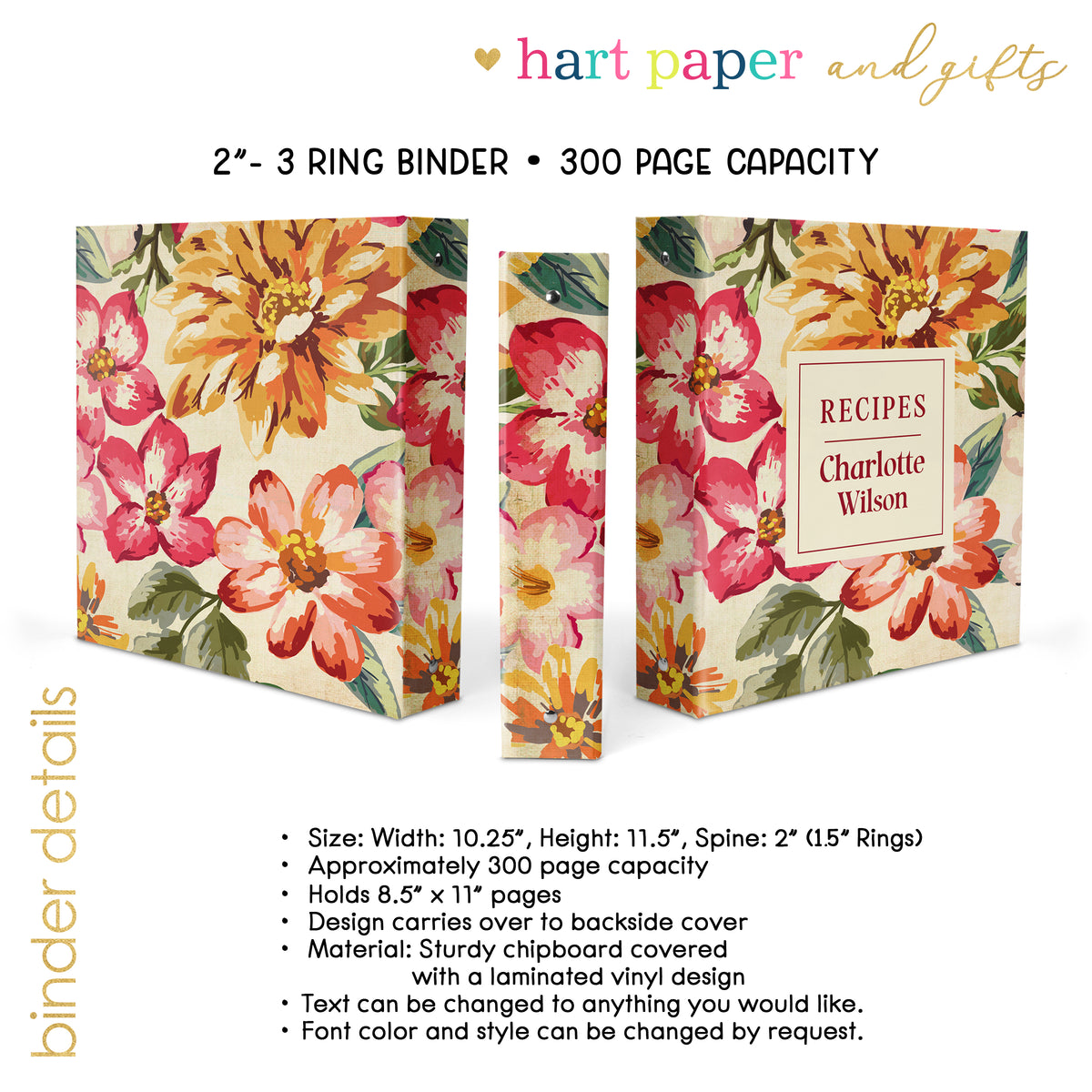 Hibiscus Flowers Personalized Custom 2" 3 Ring Recipe Book Binder