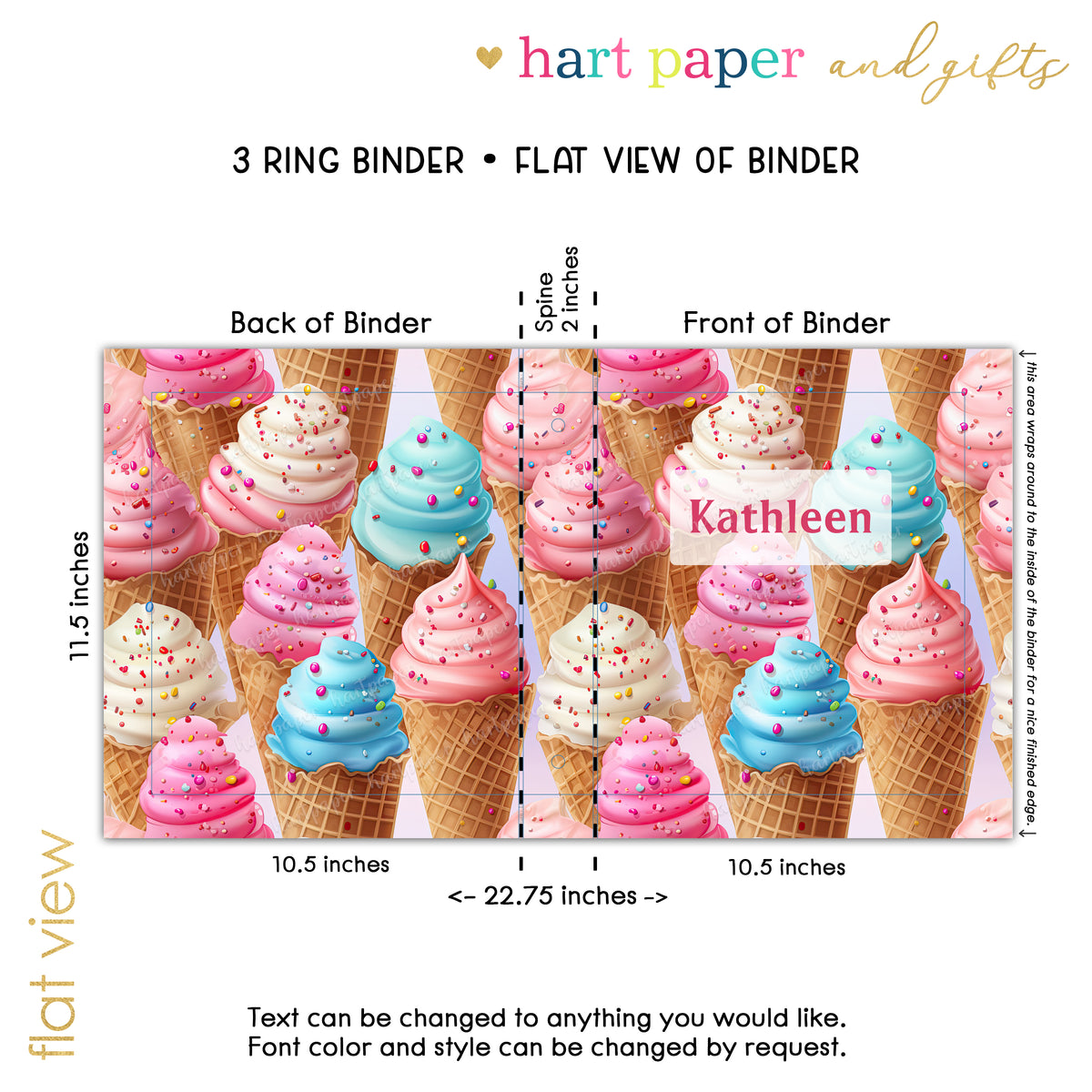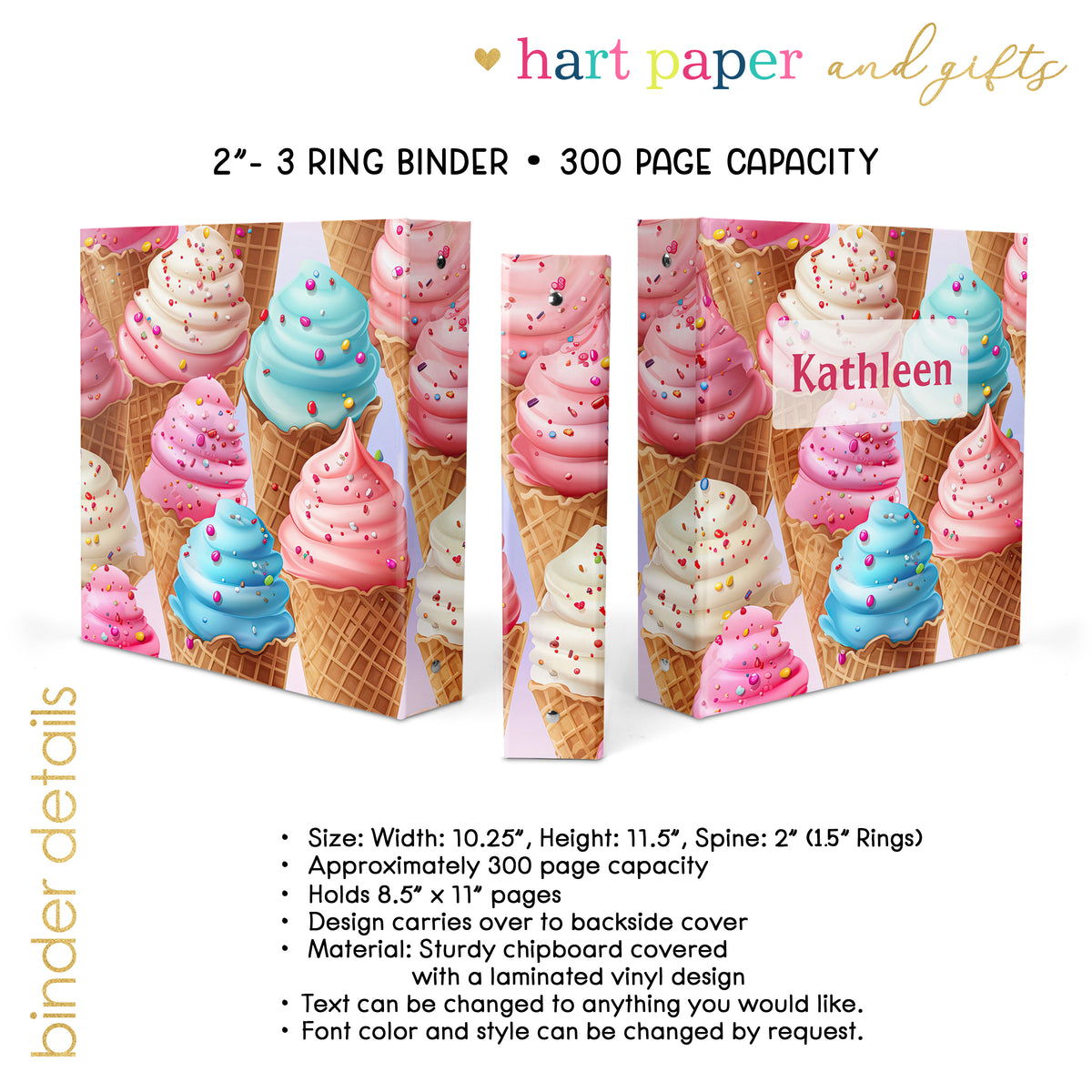 Ice Cream Personalized Custom 2" 3 Ring Binder • School Office Supplies