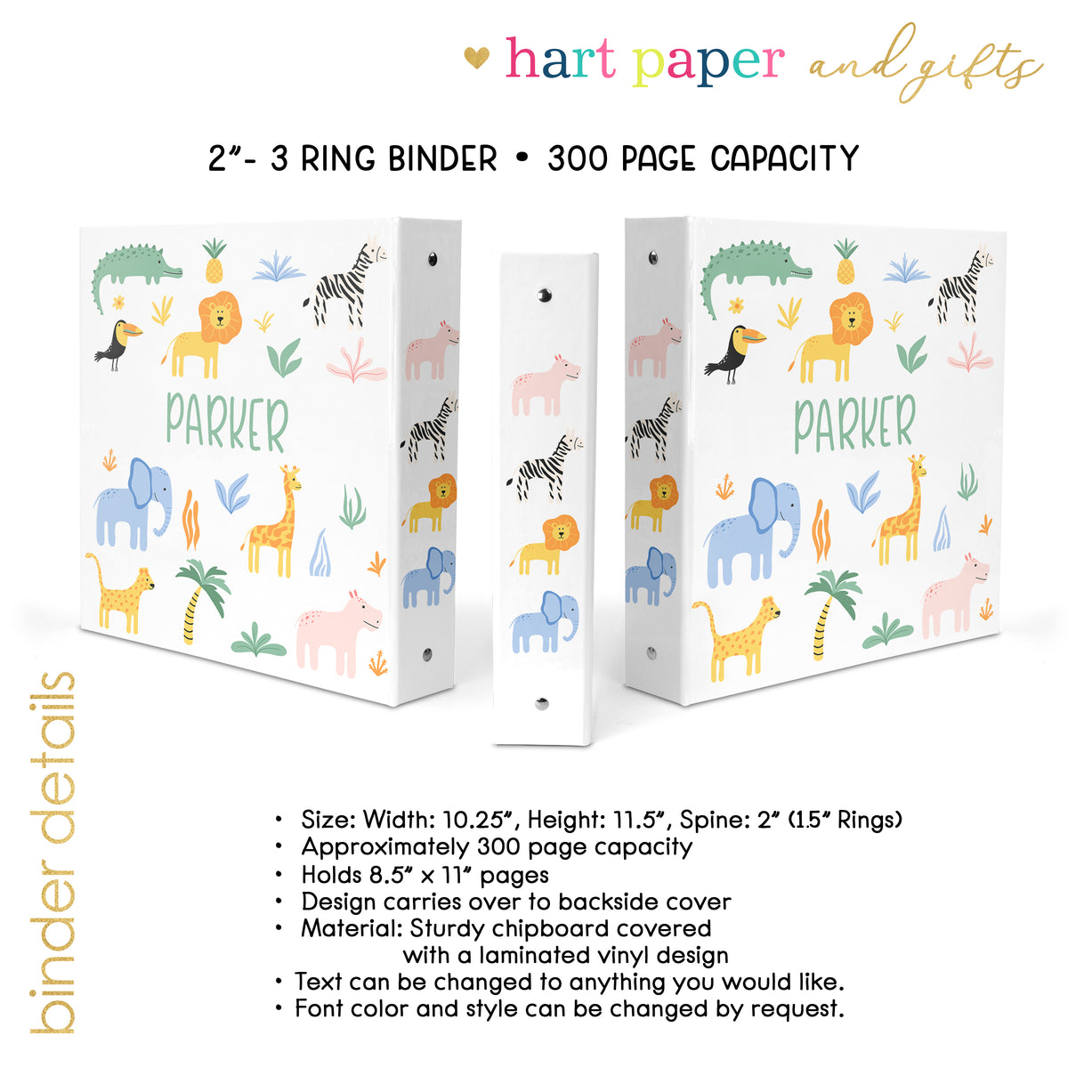 Jungle Safari Personalized Custom 2" 3 Ring Binder • School Office Supplies