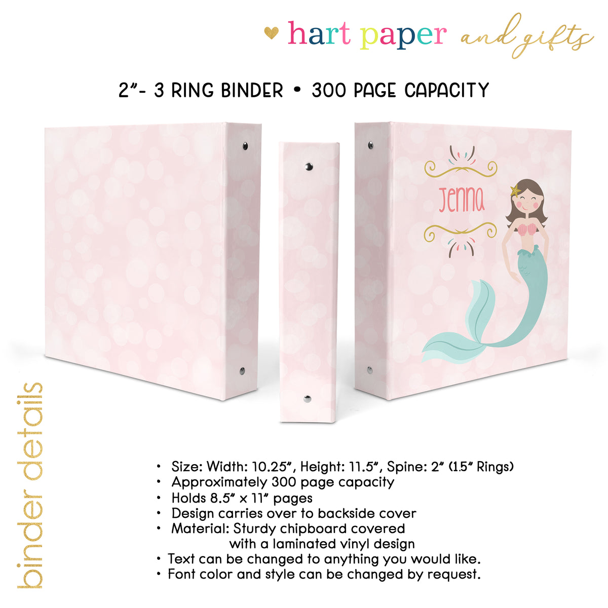 Mermaid Rainbow Personalized Custom 2" 3 Ring Binder • School Office Supplies