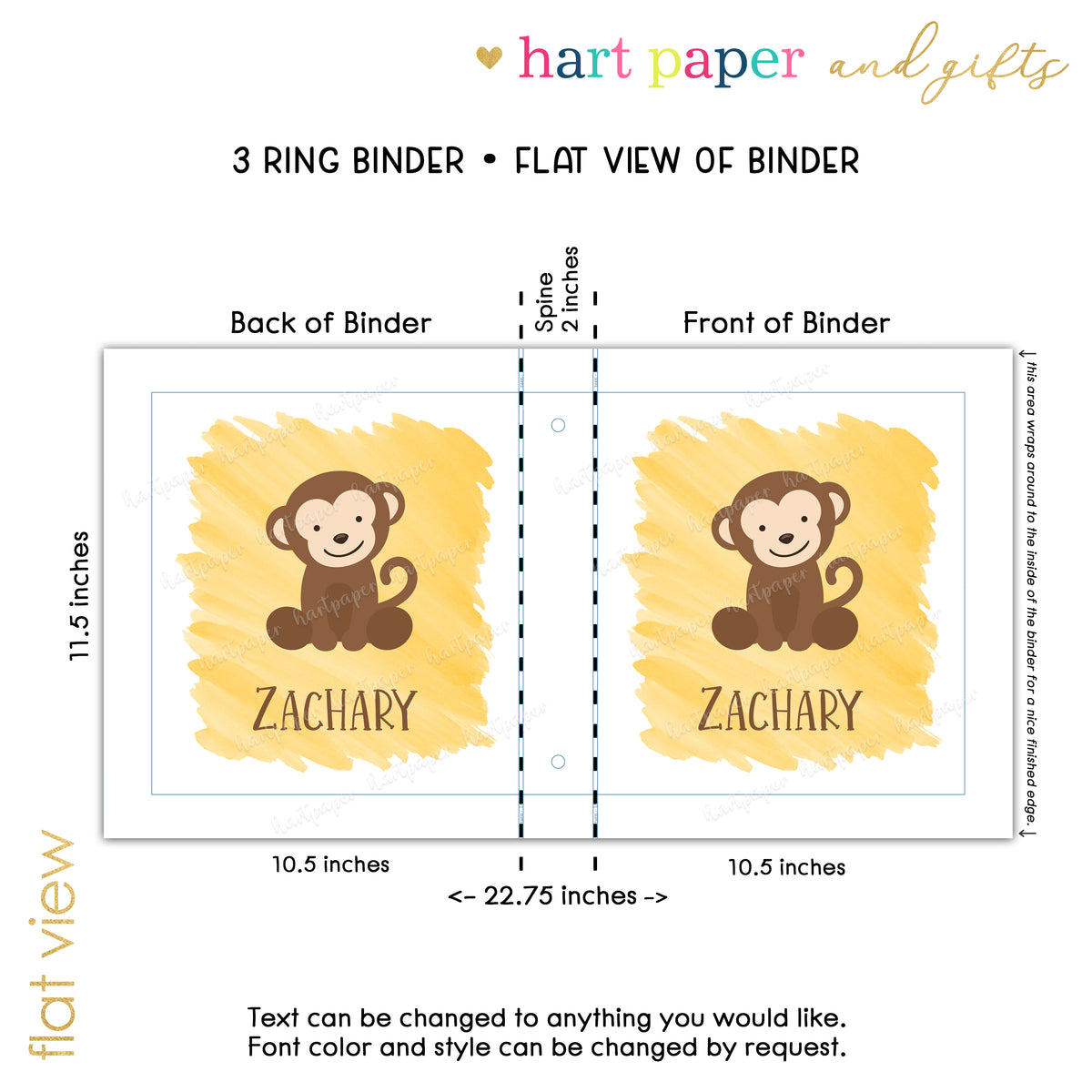 Monkey Personalized Custom 2" 3 Ring Binder • School Office Supplies