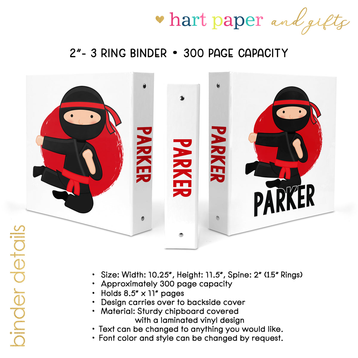 Ninja Sports Personalized Custom 2" 3 Ring Binder • School Office Supplies