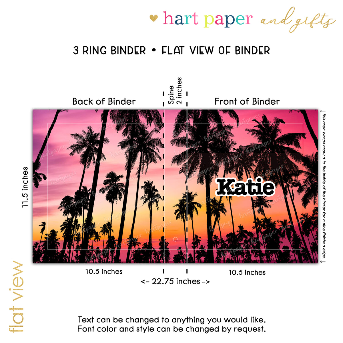 Palm Trees Beach Personalized Custom 2" 3 Ring Binder • School Office Supplies