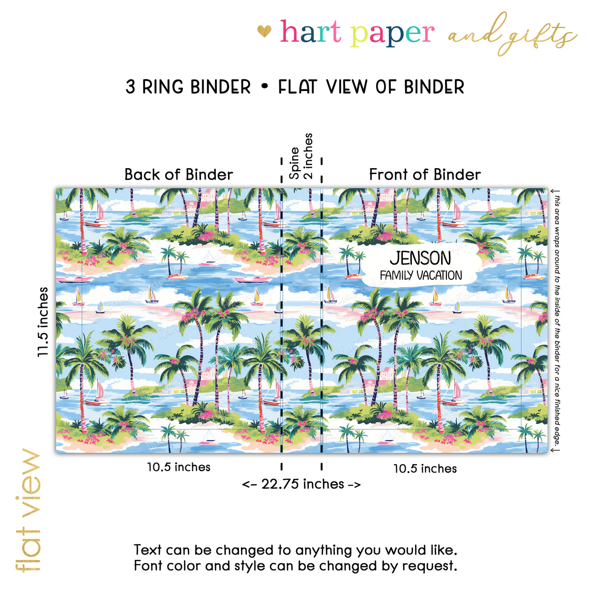 Palm Trees Preppy Beach Personalized Custom 2" 3 Ring Binder • School Office Supplies