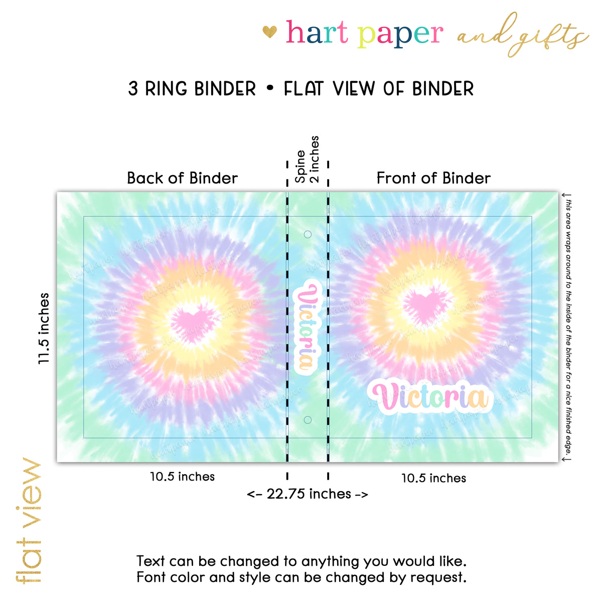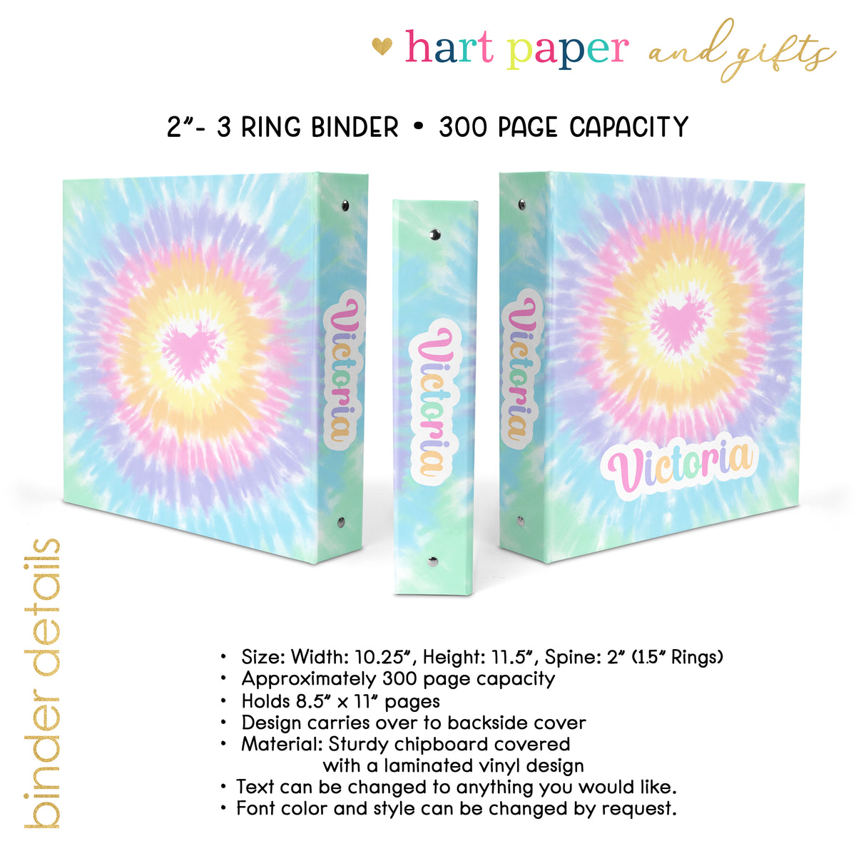 Pastel Rainbow Heart Tie Dye Personalized Custom 2" 3 Ring Binder • School Office Supplies