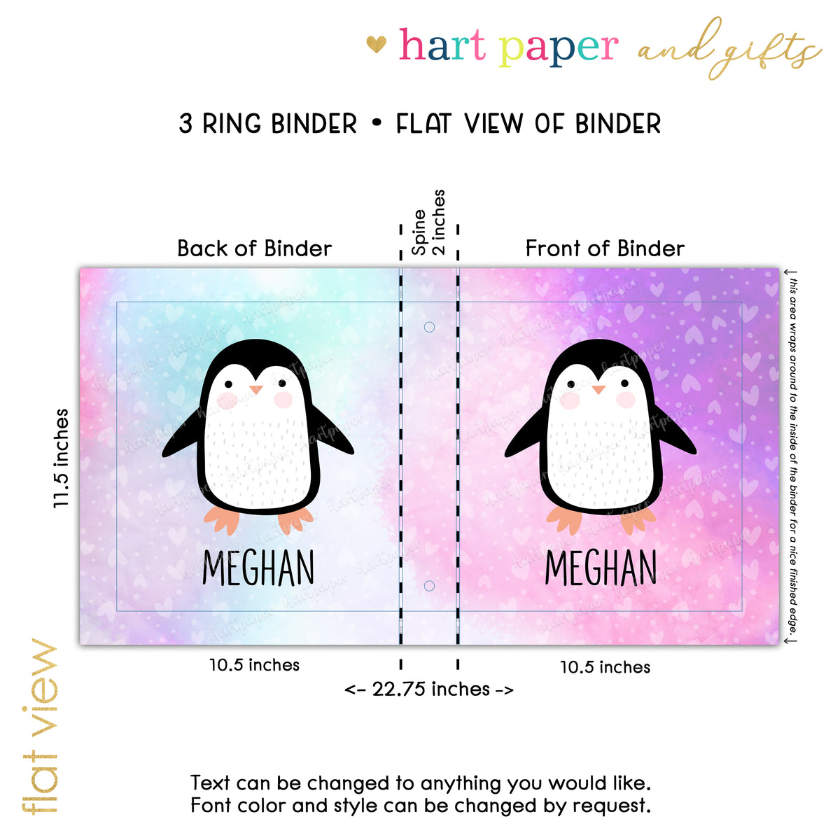 Penguin Animals Personalized Custom 2" 3 Ring Binder • School Office Supplies