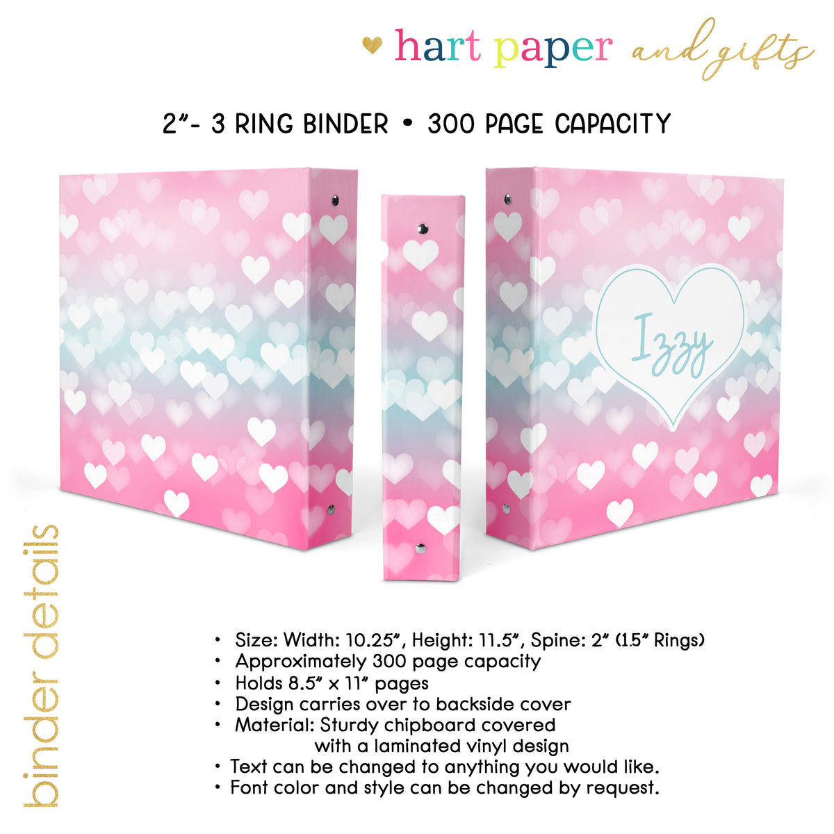 Pink Blue Hearts Personalized Custom 2" 3 Ring Binder • School Office Supplies