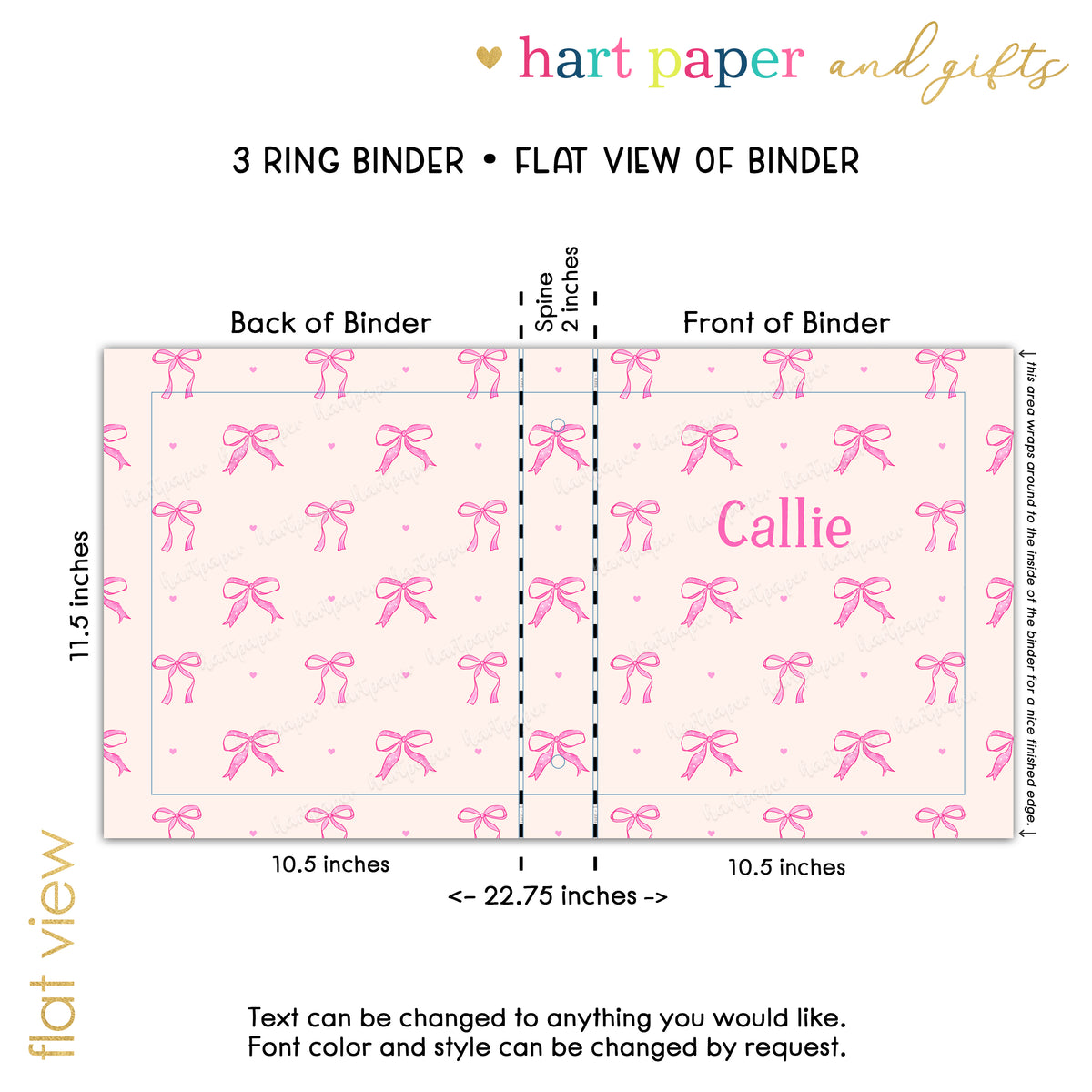 Pink Bow Coquette Personalized Custom 2" 3 Ring Binder • School Office Supplies