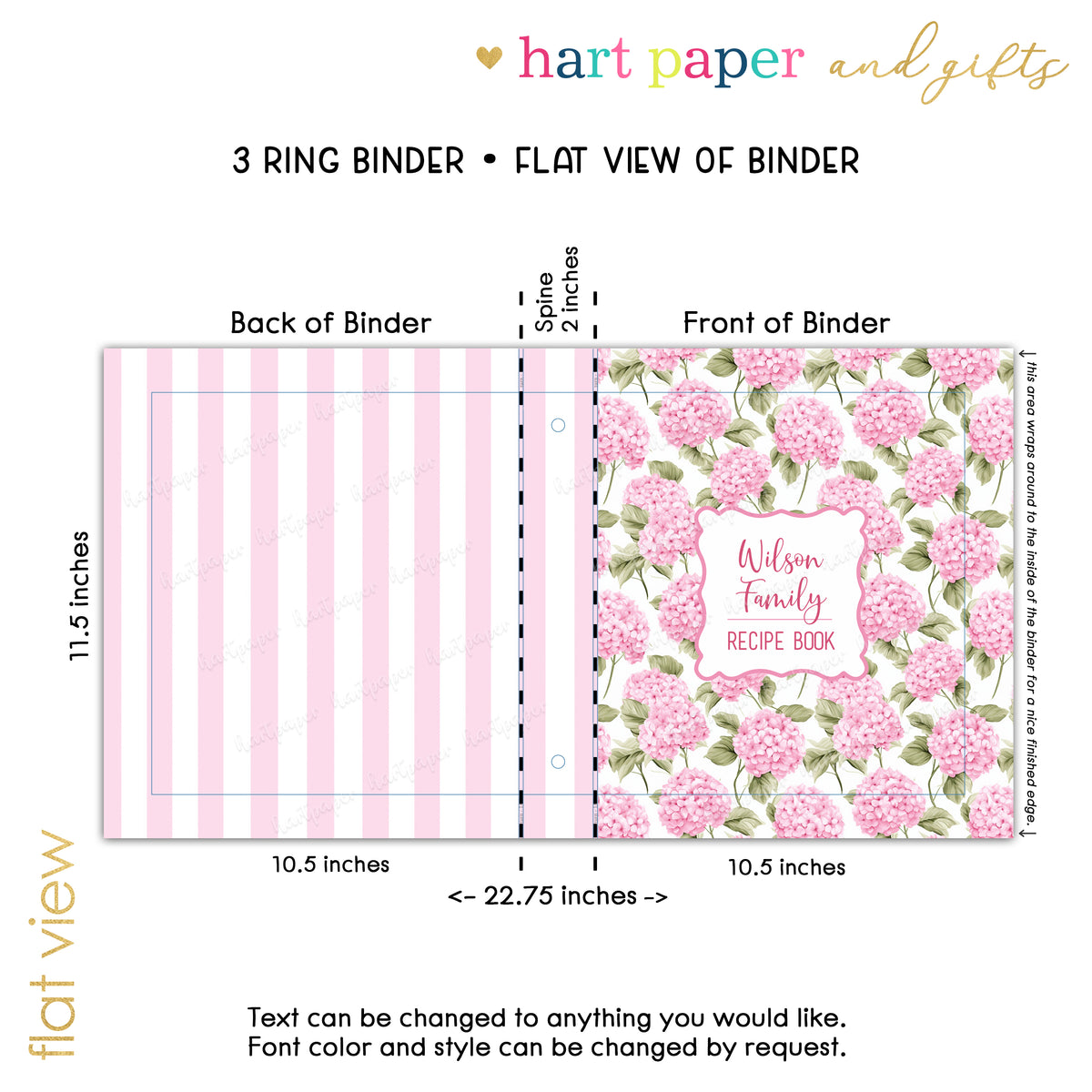 Pink Hydrangea Personalized Custom 2" 3 Ring Recipe Book Binder