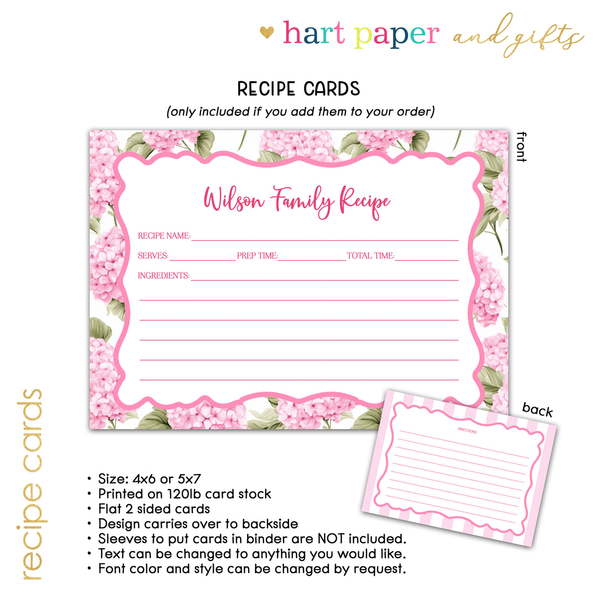Organize your favorite recipes in style with our beautifully designed custom recipe binder and optional matching recipe cards. Perfect for storing family recipes, meal planning ideas, and holiday favorites, this set adds both charm and practicality to any kitchen.