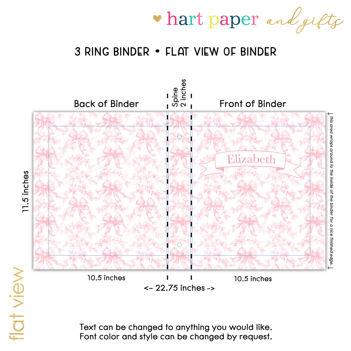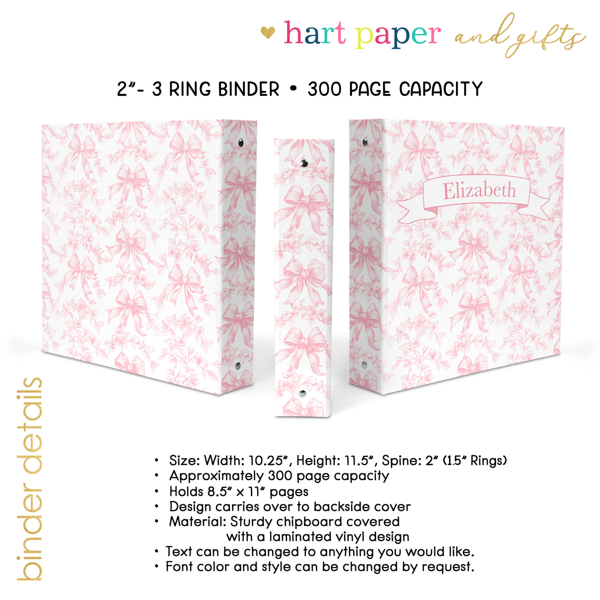 Pink Toile Coquette Bow Chinoiserie Flowers Personalized Custom 2" 3 Ring Binder • School Office Supplies