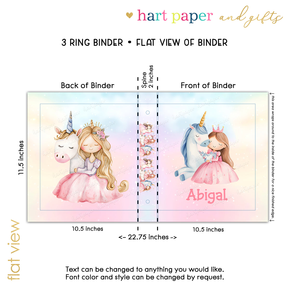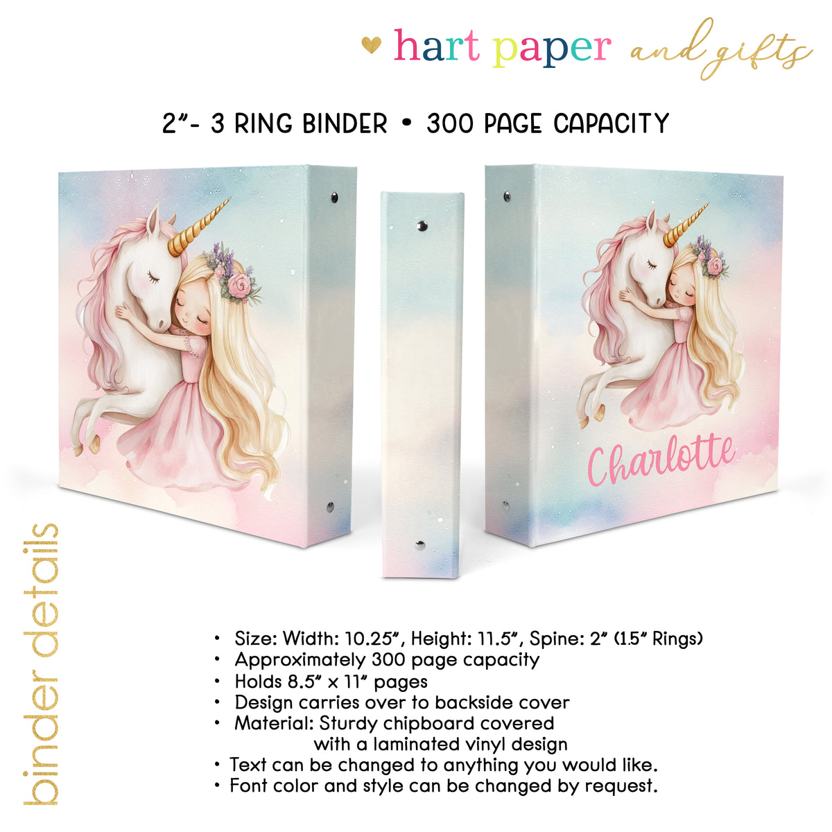 Princess Unicorn Rainbow Personalized Custom 2" 3 Ring Binder • School Office Supplies