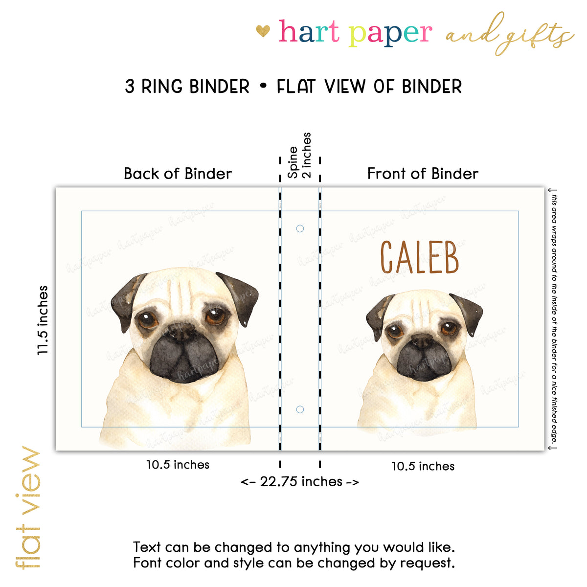 Pug Dog Puppy Personalized Custom 2" 3 Ring Binder • School Office Supplies