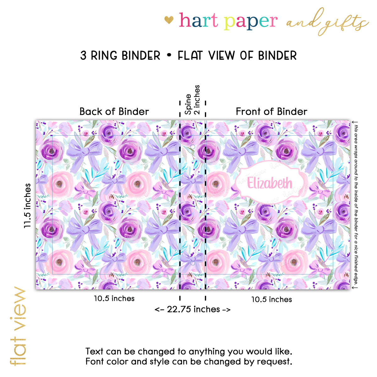 Purple Bow Coquette Flowers Personalized Custom 2" 3 Ring Binder • School Office Supplies