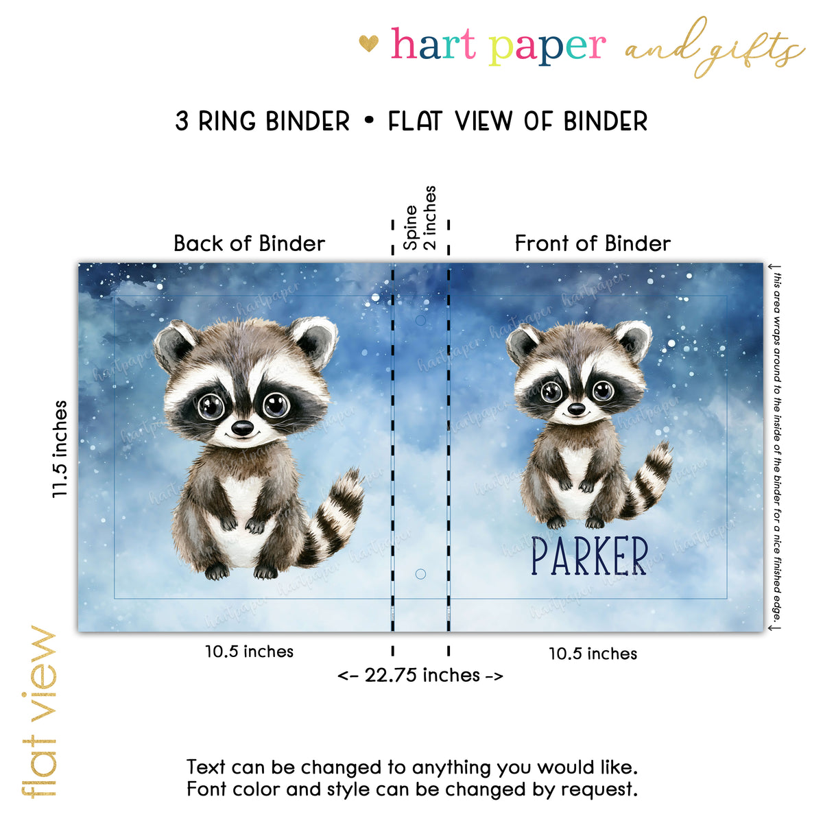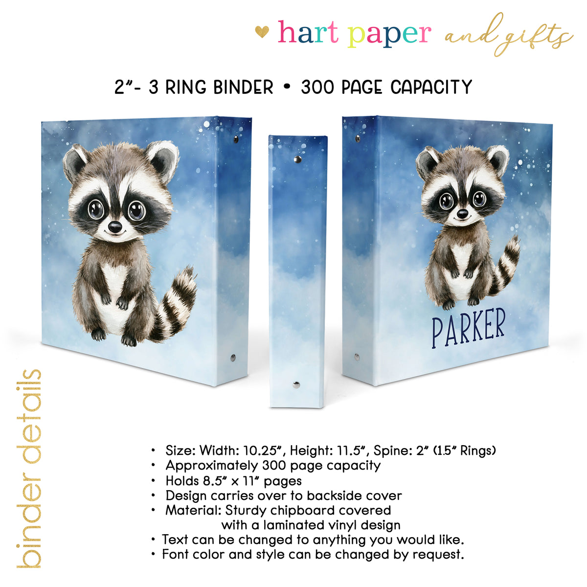 Raccoon Personalized Custom 2" 3 Ring Binder • School Office Supplies