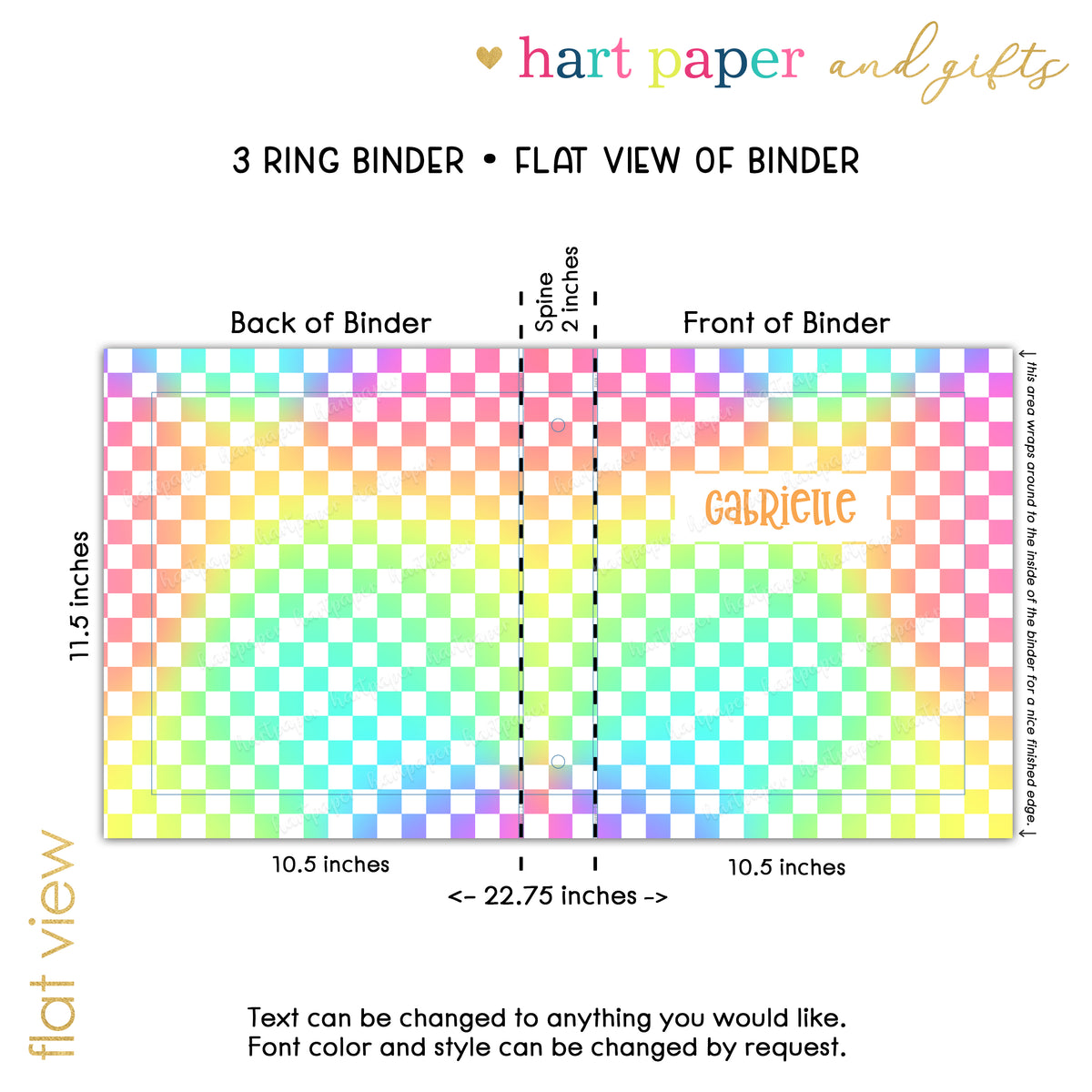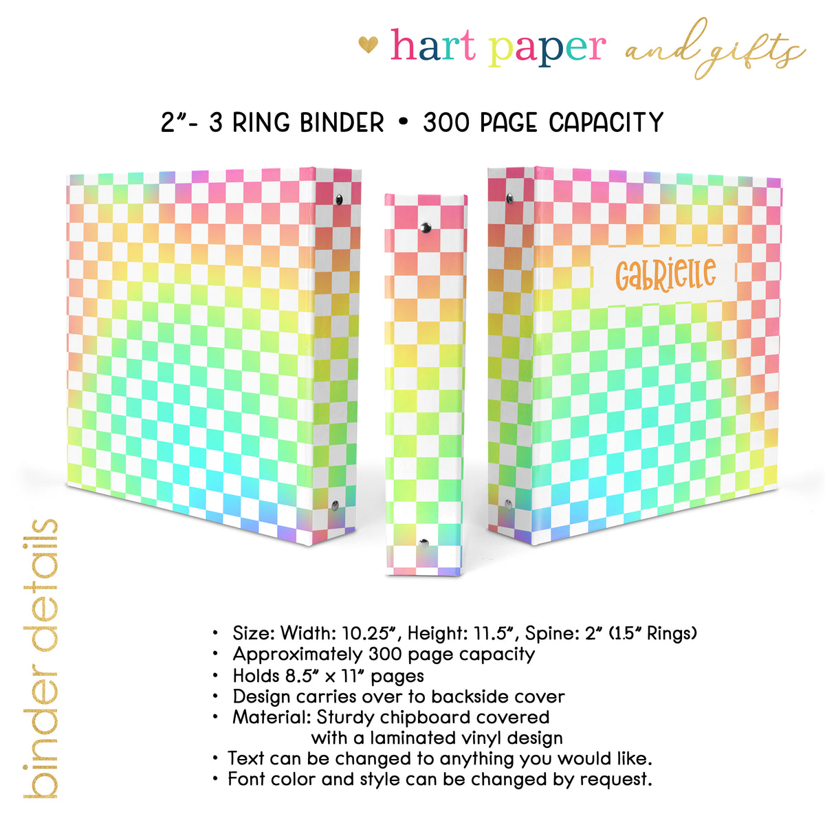 Rainbow Checks Personalized Custom 2" 3 Ring Binder • School Office Supplies