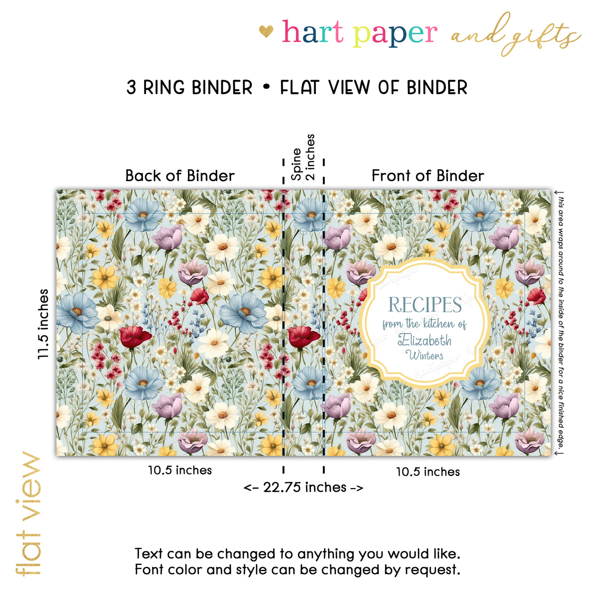 Rainbow Flowers Personalized Custom 2" 3 Ring Recipe Book Binder