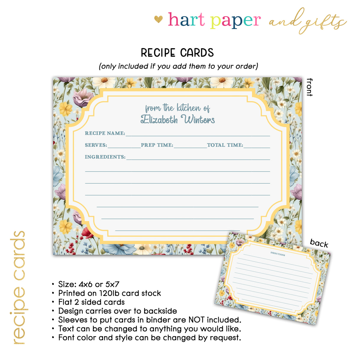Organize your favorite recipes in style with our beautifully designed custom recipe binder and optional matching recipe cards. Perfect for storing family recipes, meal planning ideas, and holiday favorites, this set adds both charm and practicality to any kitchen.